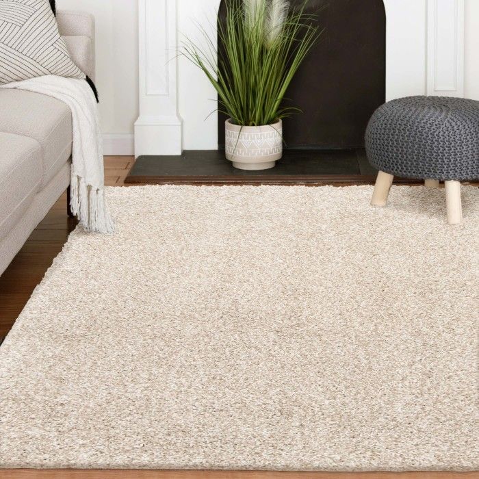 Create a chic, plush foundation for your space with this luxurious rug and instantly upgrade your bedroom, living room, or den. Whatever your style, this solid-colored area rug in rich cream will work seamlessly with your home decor. The contemporary look and soft feel of this piece delight the senses, turning any room in your home into a welcoming place for family and friends to gather. Every time you walk in the room, you’ll be able to sink your toes into the luxuriously dense pile of soft polypropylene yarns and enjoy an oasis of relaxation. Looking to add high-end design to your space without the high-maintenance headache? Feel free to showcase this lush, fashionable floor covering in any area of your home – even places with high traffic and spill risk, such as busy dining areas and lively playrooms. The exceptional stain resistant and fade resistant properties of this piece ensure that it will maintain its beautiful appearance and irresistible softness for years to come.