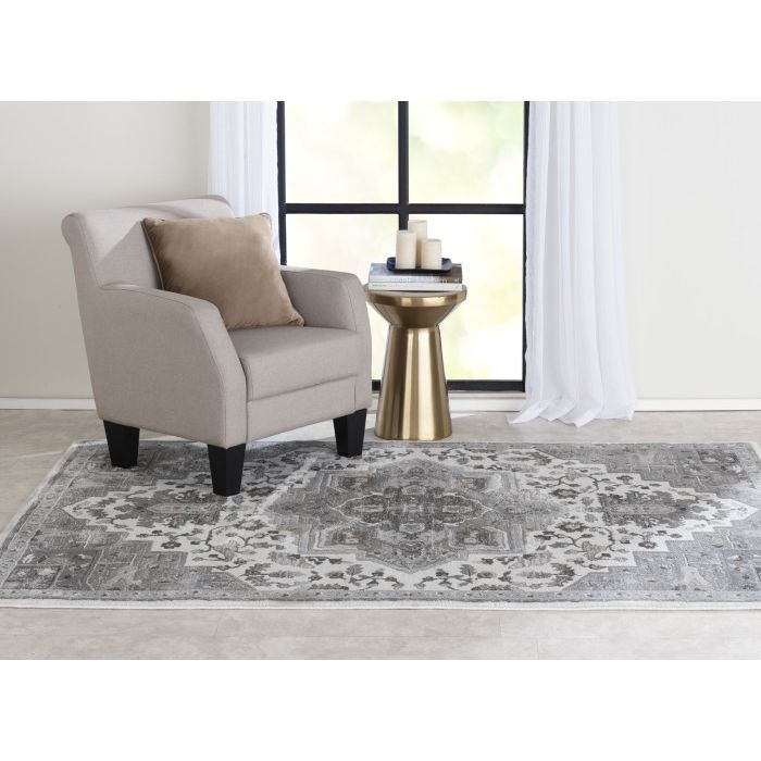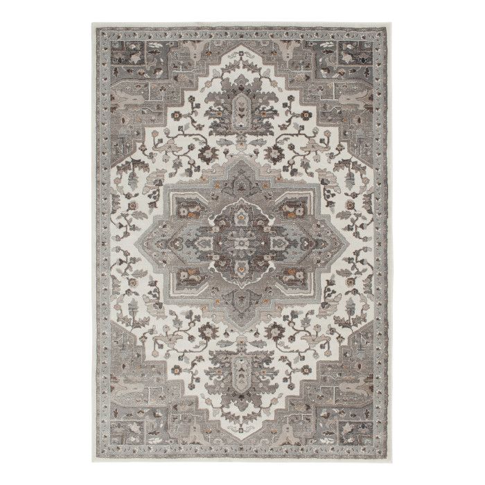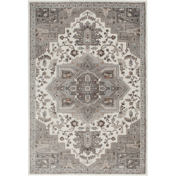 Intricate patterns and natural elements define this Southwestern-style Oriental area rug, with a welcoming color palette to invite relaxation in any indoor space. Whether you’re looking to enhance the style of your own bedroom, a cozy den, or a busy dining area, this durable rug is ready to take your bare floor from “blah” to bold. Elegantly designed with bright white, dusty grays, and small orange accents, this piece features striking patterns to capture the attention of your guests while wowing them with its incredible softness. Soft polypropylene yarn is woven using state-of-the-art, computer-driven looms to create a low profile pile that feels great underfoot and is still easy to clean. Exceptional durability frees you to place this piece anywhere in your home without fear of fading or staining, so you can enjoy the luxurious texture and beautiful design for years to come. For indoor use. Made in the USA.