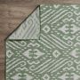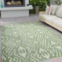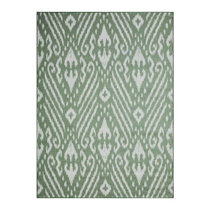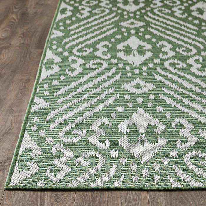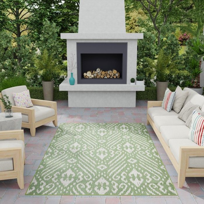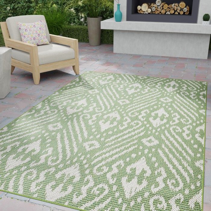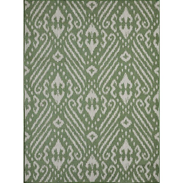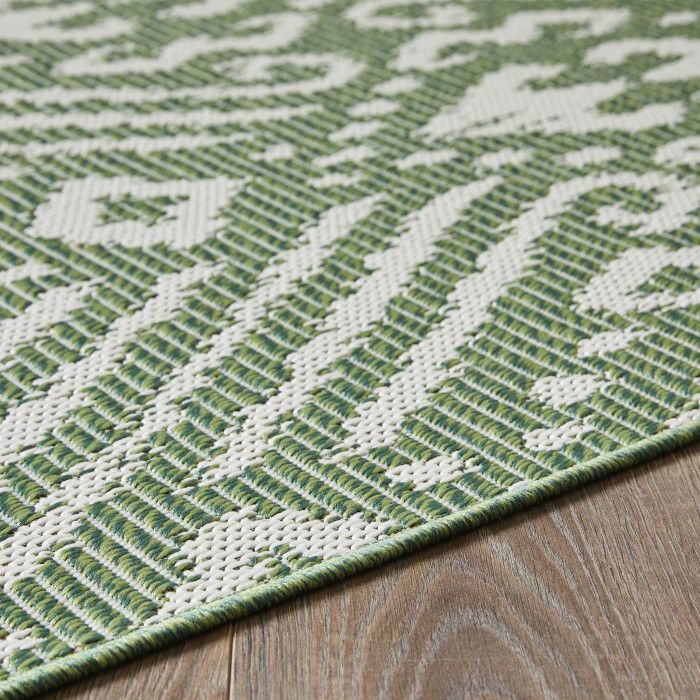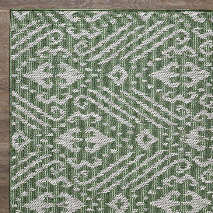 - • Stain Resistant• Fade Resistant• Machine made with Polypropylene Yarn.• Green/Cream Geometric Pattern with Fibrillated backing.• 0.24 in Pile Height Covering 60.28 Square Feet• Durable construction is perfect for high-traffic areas• Lightweight and stain-resistant. Easy to clean and maintain, we recommend vacuuming regularly or spraying with a garden hose. Always test a small area first.