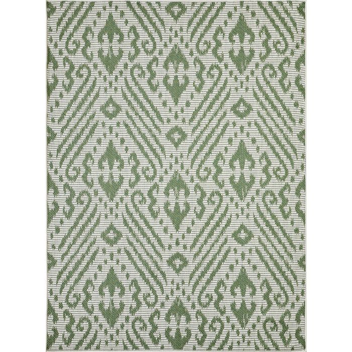 - • Stain Resistant• Fade Resistant• Machine made with Polypropylene Yarn.• Cream/Green Geometric Pattern with Fibrillated backing.• 0.24 in Pile Height Covering 37.89 Square Feet• Durable construction is perfect for high-traffic areas• Lightweight and stain-resistant. Easy to clean and maintain, we recommend vacuuming regularly or spraying with a garden hose. Always test a small area first.