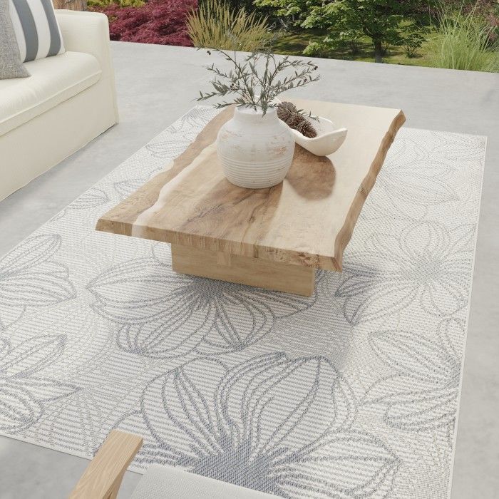 - • Stain Resistant • Fade Resistant • Machine made with Polypropylene Yarn. • Cream/Blue Floral Pattern with Fibrillated backing. • 0.24 in Pile Height Covering 77.5 Square Feet • Durable construction is perfect for high-traffic areas • Lightweight and stain-resistant. Easy to clean and maintain, we recommend vacuuming regularly or spraying with a garden hose. Always test a small area first.