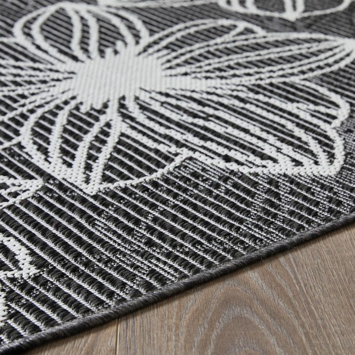 Modern style is in full bloom across this sketch-style area rug, taking the look of your indoor or outdoor space to the next level of home decor. Crisp flowers seem to float above a rich background, adding depth and dimension to any area in or around your home. Cultivating high-end style doesn’t have to be an impractical, high maintenance hassle – this surprisingly comfortable area rug is exceptionally durable, stain-resistant and fade-resistant, so you can showcase it in even the busiest and sunniest areas of your home without worrying about spills, foot traffic, or loss of color quality. Whether you’re decorating a quiet corner of the porch or a central dining area for family and friends to gather, this piece has everything you need. Each rug is machine made using polypropylene yarns and state-of-the-art, computer-driven looms with an easy to clean, low-profile pile, so you can be sure this floor covering will maintain its beautiful appearance and comfort underfoot for years to come.