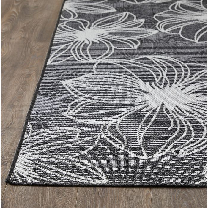 - • Stain Resistant• Fade Resistant• Machine made with Polypropylene Yarn.• Gray/Cream Floral Pattern with Fibrillated backing.• 0.24 in Pile Height Covering 60.28 Square Feet• Durable construction is perfect for high-traffic areas• Lightweight and stain-resistant. Easy to clean and maintain, we recommend vacuuming regularly or spraying with a garden hose. Always test a small area first.