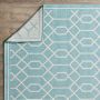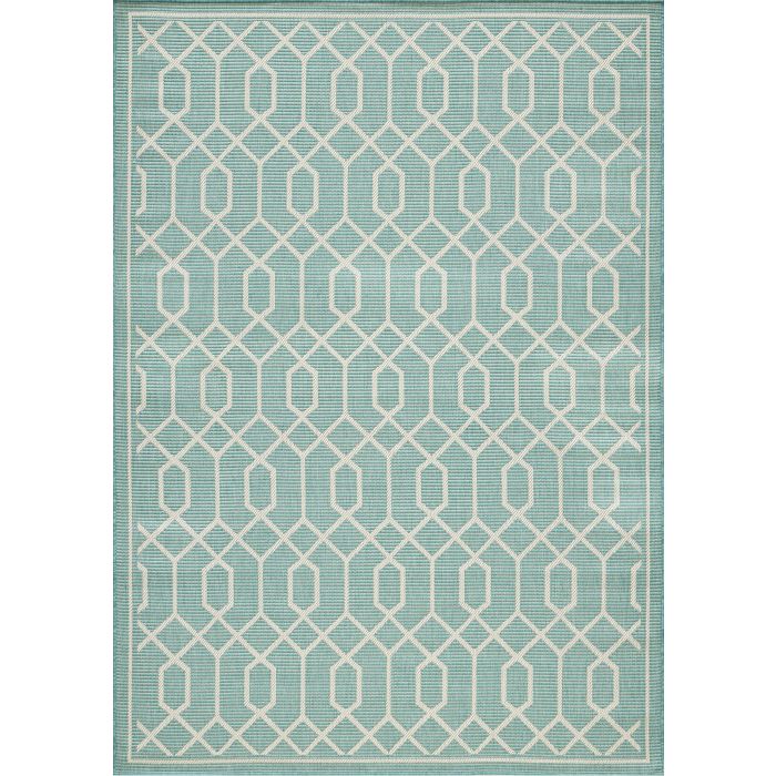 - • Stain Resistant• Fade Resistant• Machine made with Polypropylene Yarn.• Teal/Cream Trellis Pattern with Fibrillated backing.• 0.24 in Pile Height Covering 125.93 Square Feet• Durable construction is perfect for high-traffic areas• Lightweight and stain-resistant. Easy to clean and maintain, we recommend vacuuming regularly or spraying with a garden hose. Always test a small area first.
