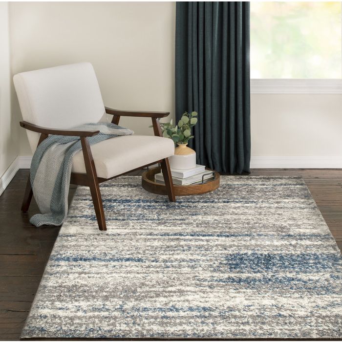 Featuring a modern take on traditional Oriental design, this versatile area rug works seamlessly with a wide range of home decor styles and elevates the look of any home office, bedroom, or dining area with ease. Intricate designs in crisp white overlay a stylishly distressed background of cobalt blue and dusty gray. Elements of shrink yarn create dynamic, dimensional details in every rug, featuring a blend of polypropylene and polyester yarns for rugs that are both soft and durable. Perfect for a wide range of customer groups, these beautifully woven area rugs will do well in any area of the home - even places with high traffic and spill risk. From a quiet corner to a lively gathering space, the simple sophistication of this rug is a perfect addition to your home decor. In addition to being easy to clean, the stain resistant and fade resistant properties of these pieces ensure that they will maintain their rich color, exceptional design, and soft underfoot feel for years to come.