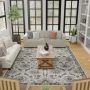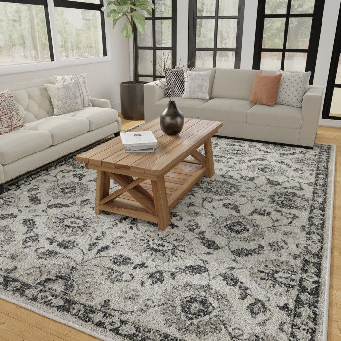This elegant border style area rug introduces a welcoming, sophisticated feel to any space, with floral-inspired designs and a versatile palette that works seamlessly with a wide range of home decor styles. A network of floral medallions provide perfect symmetry, connected with twisting vines and framed by an intricately decorated border for a touch of cheerful elegance. Each rug is machine made using state-of-the-art, computer-driven looms, with a low profile pile of super-soft polypropylene yarn that feels great underfoot and allows you to enjoy high-end design without the high-maintenance hassle, so you can spend more time enjoying your space and less time worrying about upkeep. Showcase this beautifully woven area rug front and center in a lively living room, tranquil office space, or spill-prone dining area without fear of fading or stains – the durable construction of this piece ensures it will maintain its exceptional look and feel for years to come.