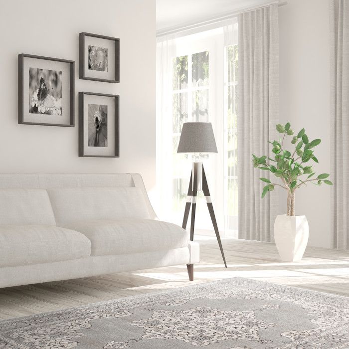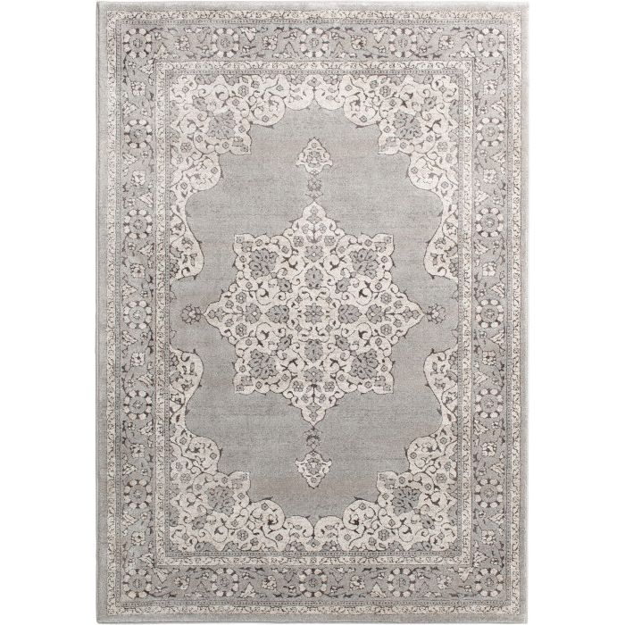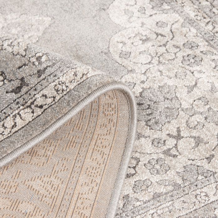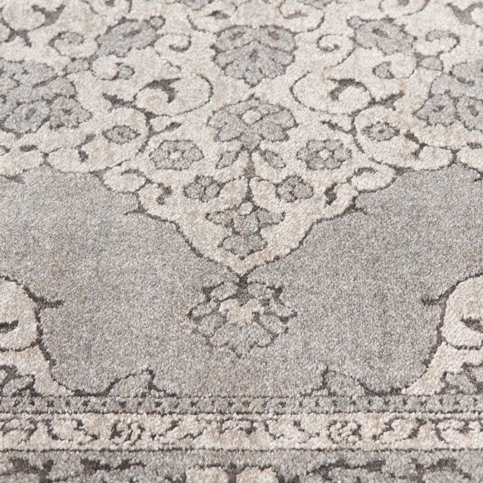 Neutral tones of white and dusky gray make this Oriental style area rug perfect for adding a soft, welcoming touch to your living room, bedroom, or home office. The elegant, modern design fits with a variety of home decor styles, adding an element of relaxation to your favorite space. Floral details provide a natural feel, working with ornate patterns in a classic Oriental style to make this the perfect piece to complete a trendy gathering space or quiet work area. Each rug is machine made using state-of-the-art, computer-driven looms, and the low profile pile of super-soft polypropylene yarn allows you to enjoy high-end design without sacrificing comfort or durability. Perfect for a wide range of decor styles, this beautifully woven area rug will do well in any area of your home - even places with high traffic and spill risk. In addition to being easy to clean, the stain resistant and fade resistant properties of this piece ensure that it will maintain its appearance for years to come. For indoor use. Made in the USA.