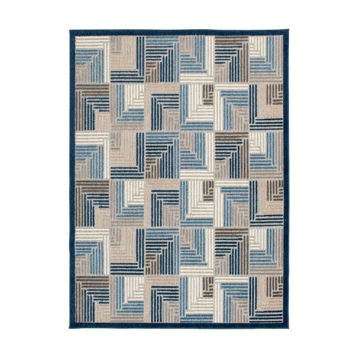Add depth and dimension to your kitchen, garden, or patio with this beautifully designed and exceptionally durable area rug. Abstract geometric designs in tones of red, orange, green, blue, and ivory create a multidimensional look, and the unique high-low weaving technique adds compelling texture. Whether it’s a quiet spot in the shade or a central dining area, this floor covering lets you infuse a bit of low maintenance, high-end design into your home without fear of staining or fading. These gorgeous floor coverings are fade resistant, stain resistant, and surprisingly comfortable underfoot thanks to soft polypropylene yarns, so you can spend more time enjoying your space and less time on maintenance. Easy to clean and machine made using state-of-the-art, computer-driven looms, these rugs are sure to maintain their exceptional durability and rich design for years to come. For indoor or outdoor use. Imported.