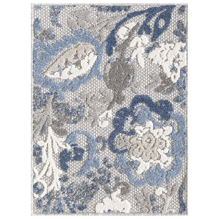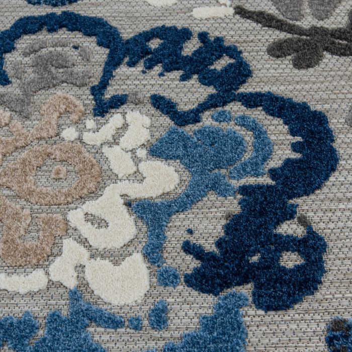 - • Stain Resistant• Fade Resistant• Machine made with 100% Polypropylene• Gray/Blue Floral Pattern with Polypropylene backing.• 0.6 cm Pile Height• Durable construction is perfect for high-traffic areas• Lightweight and stain-resistant. Easy to clean and maintain, we recommend vacuuming regularly or spraying with a garden hose. Always test a small area first.