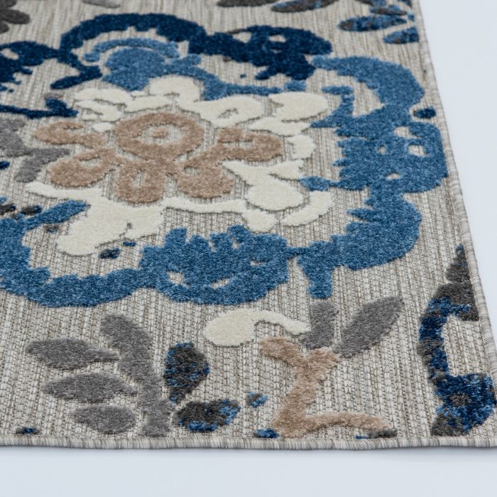 - • Stain Resistant• Fade Resistant• Machine made with 100% Polypropylene• Gray/Blue Floral Pattern with Polypropylene backing.• 0.6 cm Pile Height• Durable construction is perfect for high-traffic areas• Lightweight and stain-resistant. Easy to clean and maintain, we recommend vacuuming regularly or spraying with a garden hose. Always test a small area first.