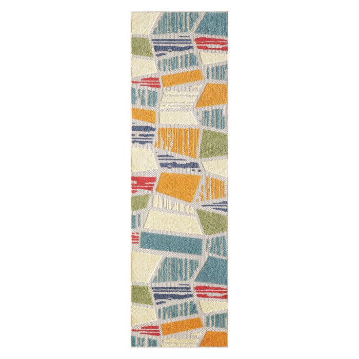 Looking to liven up your indoor or outdoor space? A pop of color can transform any back porch, patio area, or playroom into an oasis for relaxation and fun, and this durable runner is sure to brighten up any area in or around your home. The abstract design, cheerful colors, and unique high-low weaving technique create an exciting multidimensional effect, adding depth and dimension to your favorite indoor or outdoor space. Because these pieces are long-lasting and easy to clean, you can enjoy your favorite space without fear of staining or fading, even in the most high-traffic or spill-prone areas of your home. Each rug is machine made using state-of-the-art, computer-driven looms, and polypropylene yarns create a low profile pile that’s stain resistant and fade resistant. Delight in a modern combination of rich color, surprising comfort, and exceptional durability that fits both your home and your lifestyle effortlessly. For indoor or outdoor use. Imported.