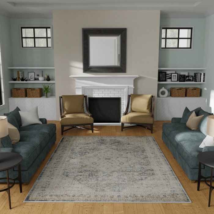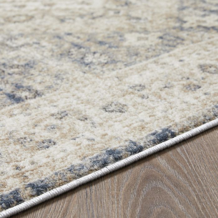 - • Stain Resistant• Fade Resistant• Machine Made With 97% Polypropylene. Jute Backing.• Blue/Cream Oriental Pattern, Covering 77.5 sq. ft.• 0.35 Pile Height Is Perfect For High-Traffic Areas• Durable construction is perfect for high-traffic areas• Lightweight and stain-resistant. Easy to clean and maintain, we recommend vacuuming regularly. Do not use beater bar/rotating brush. For spills, wipe up immediately with a clean, white towel. Spot clean with water or have it professionally cleaned.