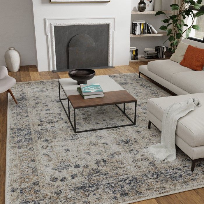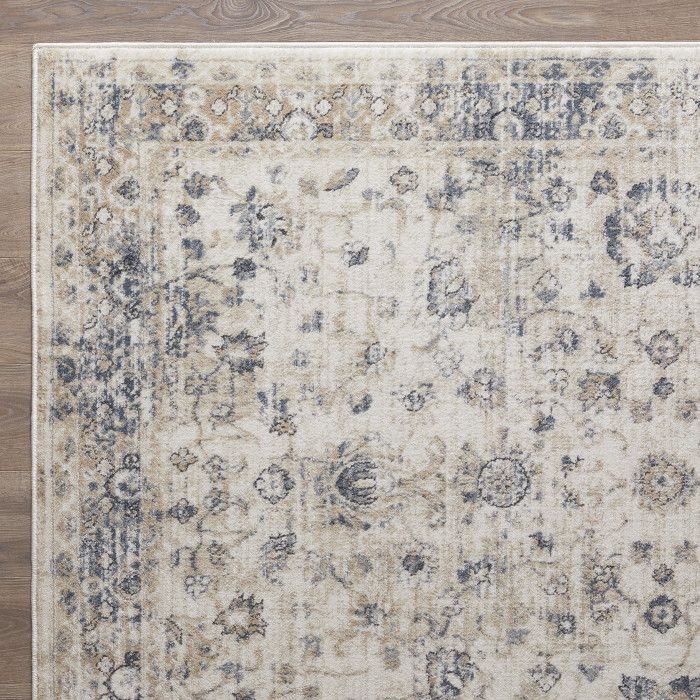 Featuring ornate, floral-inspired patterns and versatile tones, this border-style area rug will effortlessly elevate the look of your bedroom, workspace, or den. A dynamic, abstract background adds an element of depth and dimension to your space, creating an eye-catching foundation for any room, and stylish distressing adds a touch of chic rustic charm. Perfect for a wide range of decor styles, this rug is designed to fit your home and your lifestyle effortlessly. Each rug is machine made using state-of-the-art, computer-driven looms, with a low profile pile of super-soft polypropylene yarn that feels great underfoot and allows you to enjoy high-end design without the high-maintenance hassle. Showcase this beautifully woven area rug front and center in a lively living room, tranquil office space, or spill-prone dining area without fear of fading or stains – the durable construction of this piece ensures it will maintain its exceptional look and feel for years to come.