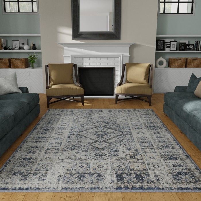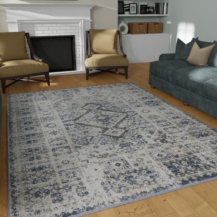 This unique twist on the traditional Oriental-inspired area rug features a patchwork design and a contemporary, versatile color palette, creating a visually compelling foundation for any room in your home. At the center, a large diamond design is framed by layers of intricately decorated squares that bring an elegant, modern feel to your space. Perfect for a wide range of decor styles, this rug is designed to fit your home and your lifestyle effortlessly. Each rug is machine-made using state-of-the-art, computer-driven looms, with a low profile pile of super-soft polypropylene yarn that feels great underfoot and allows you to enjoy high-end design without the high-maintenance hassle. Showcase this beautifully woven area rug front and center in a lively living room, tranquil office space, or spill-prone dining area without fear of fading or stains – the durable construction of this piece ensures it will maintain its exceptional look and feel for years to come.