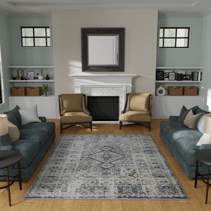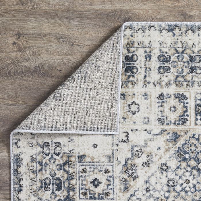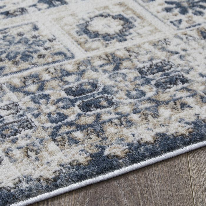 - • Stain Resistant• Fade Resistant• Machine Made With 93% Polypropylene. Jute Backing.• Blue/Cream Oriental Pattern, Covering 60.28 sq. ft.• 0.35 Pile Height Is Perfect For High-Traffic Areas• Durable construction is perfect for high-traffic areas• Lightweight and stain-resistant. Easy to clean and maintain, we recommend vacuuming regularly. Do not use beater bar/rotating brush. For spills, wipe up immediately with a clean, white towel. Spot clean with water or have it professionally cleaned.
