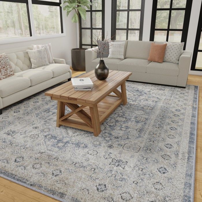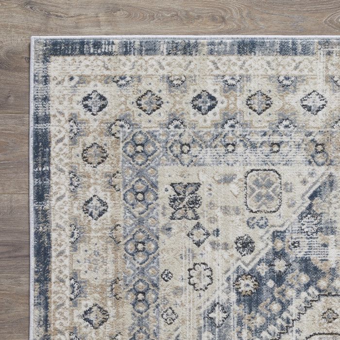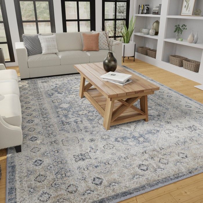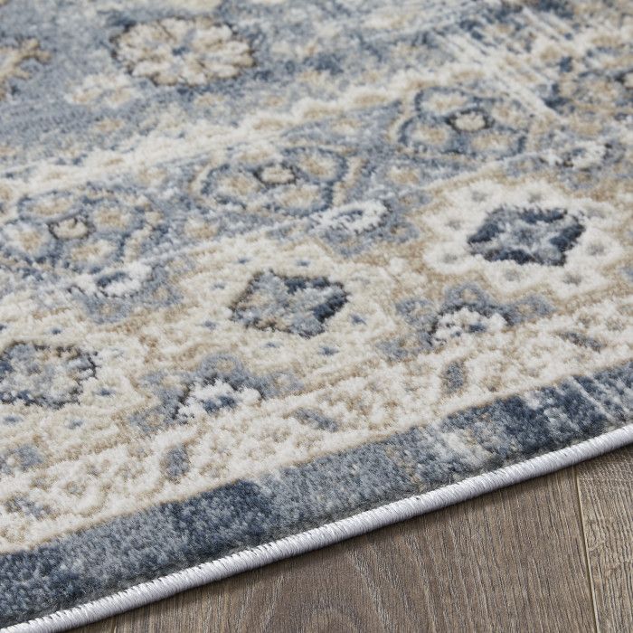 - • Stain Resistant• Fade Resistant• Machine Made With 95% Polypropylene. Jute Backing.• Blue/Cream Oriental Pattern, Covering 37.89 sq. ft.• 0.35 Pile Height Is Perfect For High-Traffic Areas• Durable construction is perfect for high-traffic areas• Lightweight and stain-resistant. Easy to clean and maintain, we recommend vacuuming regularly. Do not use beater bar/rotating brush. For spills, wipe up immediately with a clean, white towel. Spot clean with water or have it professionally cleaned.