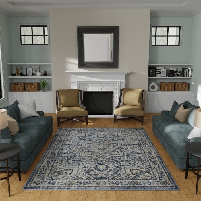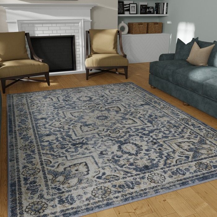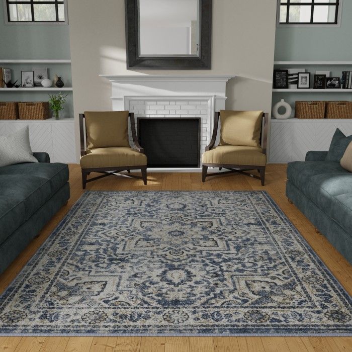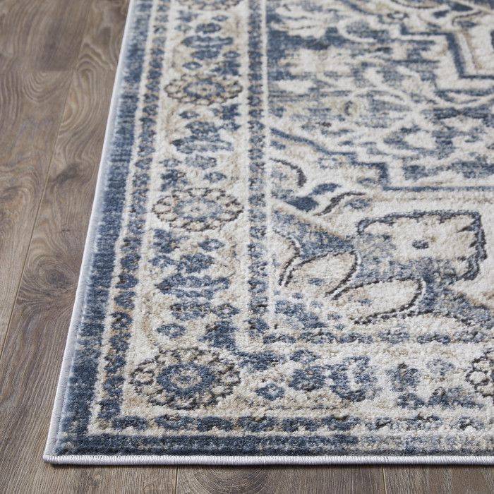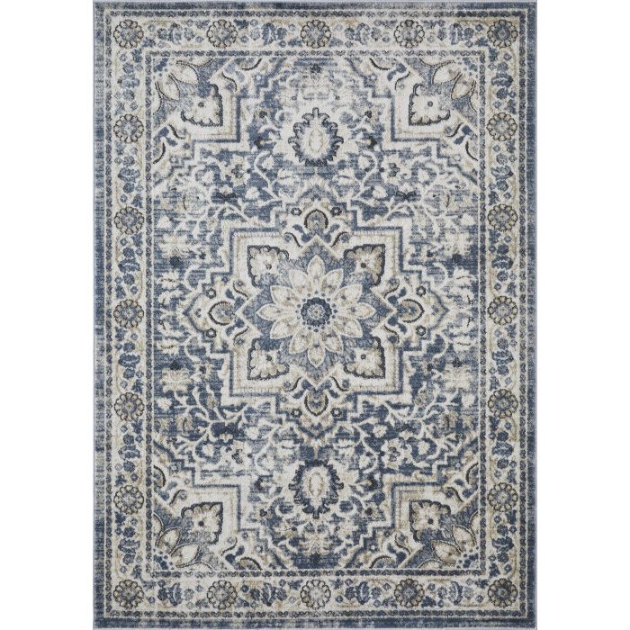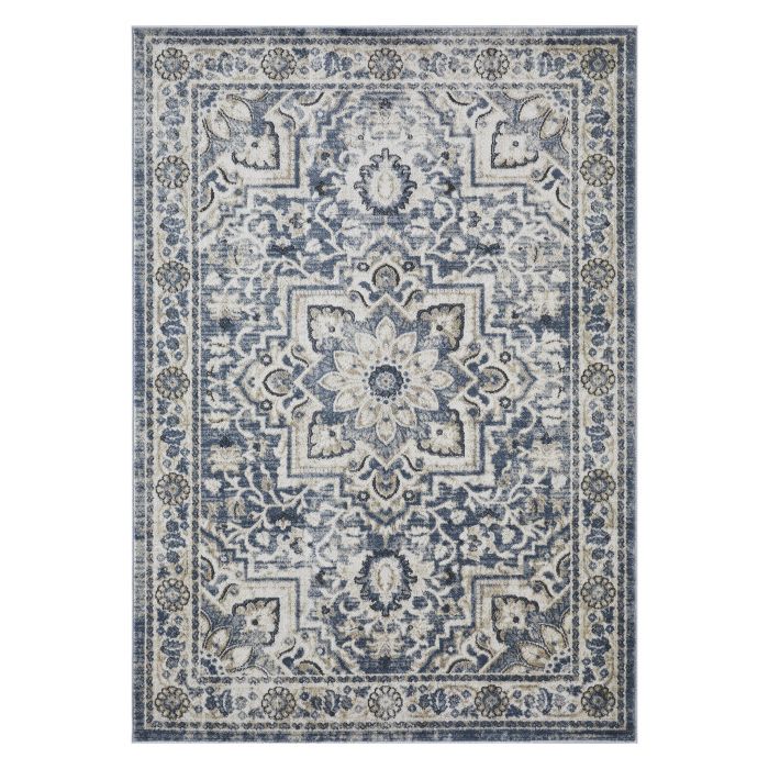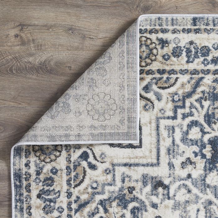 - • Stain Resistant• Fade Resistant• Machine Made With 95% Polypropylene. Jute Backing.• Blue/Cream Oriental Pattern, Covering 17.22 sq. ft.• 0.35 Pile Height Is Perfect For High-Traffic Areas• Durable construction is perfect for high-traffic areas• Lightweight and stain-resistant. Easy to clean and maintain, we recommend vacuuming regularly. Do not use beater bar/rotating brush. For spills, wipe up immediately with a clean, white towel. Spot clean with water or have it professionally cleaned.