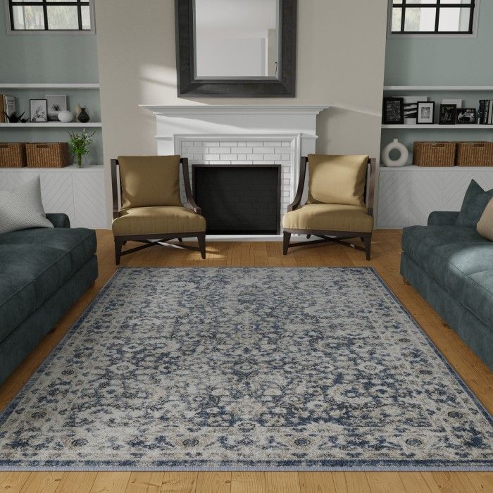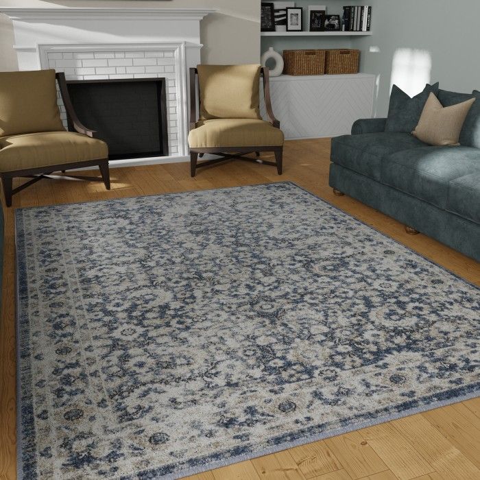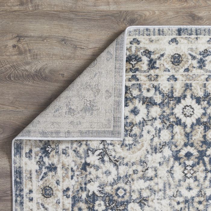 - • Stain Resistant• Fade Resistant• Machine Made With 96% Polypropylene. Jute Backing.• Blue/Cream Oriental Pattern, Covering 60.28 sq. ft.• 0.35 Pile Height Is Perfect For High-Traffic Areas• Durable construction is perfect for high-traffic areas• Lightweight and stain-resistant. Easy to clean and maintain, we recommend vacuuming regularly. Do not use beater bar/rotating brush. For spills, wipe up immediately with a clean, white towel. Spot clean with water or have it professionally cleaned.