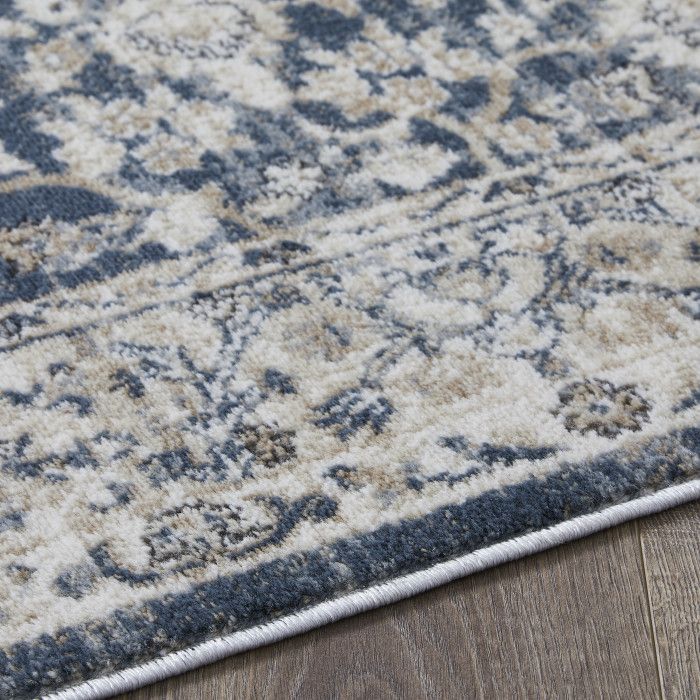 - • Stain Resistant• Fade Resistant• Machine Made With 97% Polypropylene. Jute Backing.• Blue/Cream Oriental Pattern, Covering 60.28 sq. ft.• 0.35 Pile Height Is Perfect For High-Traffic Areas• Durable construction is perfect for high-traffic areas• Lightweight and stain-resistant. Easy to clean and maintain, we recommend vacuuming regularly. Do not use beater bar/rotating brush. For spills, wipe up immediately with a clean, white towel. Spot clean with water or have it professionally cleaned.