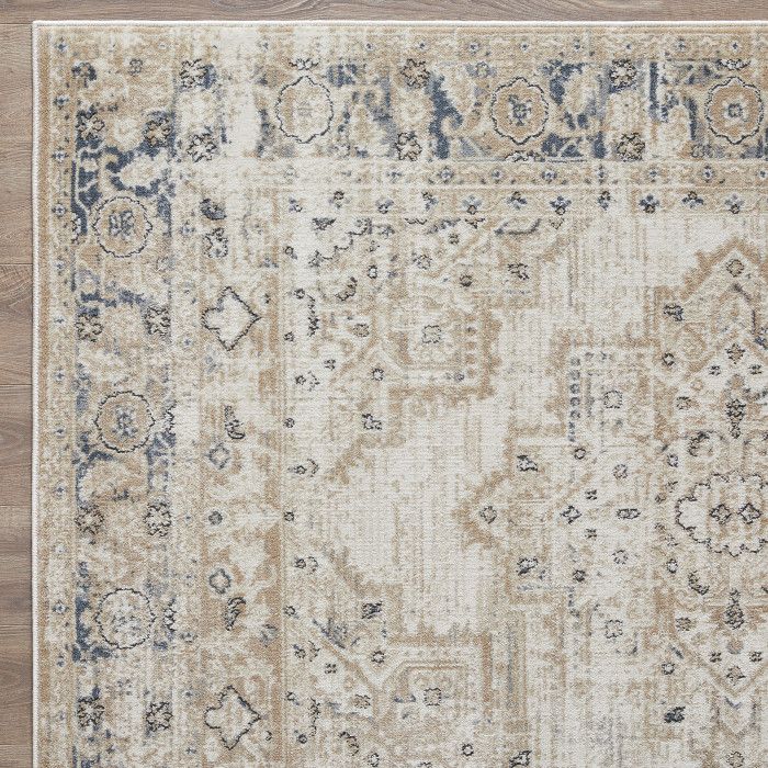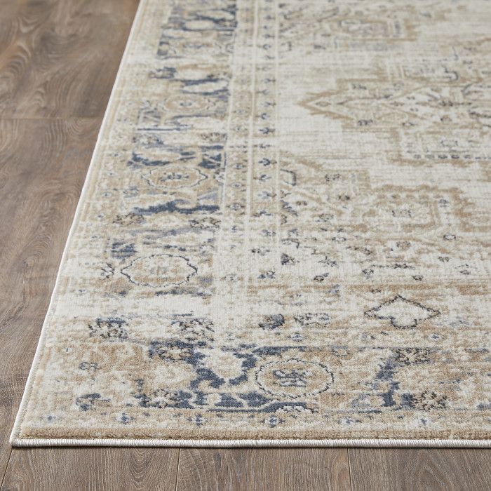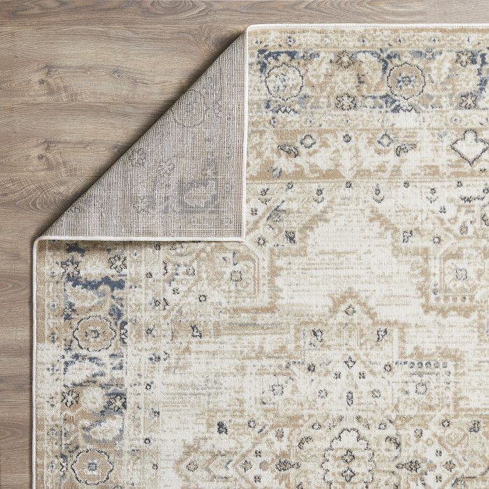 - • Stain Resistant• Fade Resistant• Machine Made With 96% Polypropylene. Jute Backing.• Cream/Blue Oriental Pattern, Covering 23.25 sq. ft.• 0.35 Pile Height Is Perfect For High-Traffic Areas• Durable construction is perfect for high-traffic areas• Lightweight and stain-resistant. Easy to clean and maintain, we recommend vacuuming regularly. Do not use beater bar/rotating brush. For spills, wipe up immediately with a clean, white towel. Spot clean with water or have it professionally cleaned.