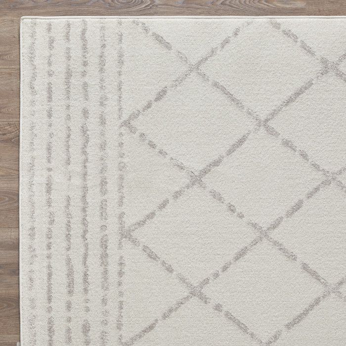Subtle distressing adds chic rustic charm to this modern border-style area rug, allowing you to upgrade your office space, dining area, or bedroom with ease. Contemporary neutral colors and stylishly broken lines add versatility and intrigue to the classic trellis design of this piece, adding an element of simple sophistication to any room. Each rug is machine made using state-of-the-art, computer-driven looms, and the low profile pile of super-soft polypropylene yarn lets you enjoy high-end design without sacrificing comfort or durability. Perfect for a wide range of decor styles, this beautifully woven area rug will do well in any area of your home—even places with high traffic and spill risk. In addition to being easy to clean, the stain resistant and fade resistant properties of this piece ensure that it will maintain its appearance for years to come. Whether you’re decorating a quiet corner or a central gathering space, this rug is designed to fit your home and your lifestyle effortlessly.