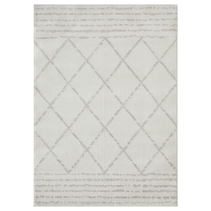 - • Stain Resistant • Fade Resistant • Machine made with Polypropylene Yarn. • Cream/Beige Geometric Pattern with Cotton backing. • 0.28 in Pile Height Covering 23.25 Square Feet • Durable construction is perfect for high-traffic areas • Lightweight and stain-resistant. Easy to clean and maintain, we recommend vacuuming regularly and spot cleaning with a clean cloth. Always test a small area first.