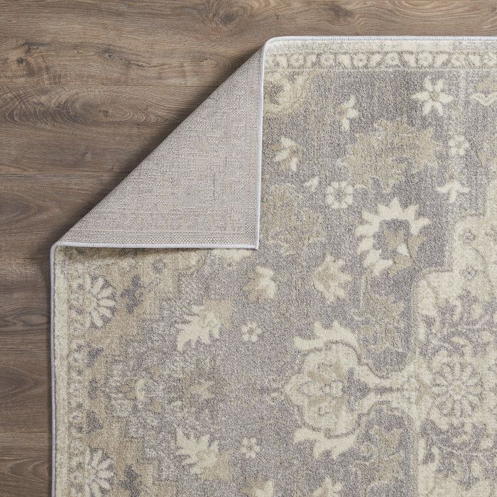 - • Stain Resistant• Fade Resistant• Machine Made With 100% Polypropylene. Jute Backing.• Cream/Gray Oriental Pattern, Covering 60.28 sq. ft.• 0.43 Pile Height Is Perfect For High-Traffic Areas• Durable construction is perfect for high-traffic areas• Lightweight and stain-resistant. Easy to clean and maintain, we recommend vacuuming regularly. Do not use beater bar/rotating brush. For spills, wipe up immediately with a clean, white towel. Spot clean with water or have it professionally cleaned.