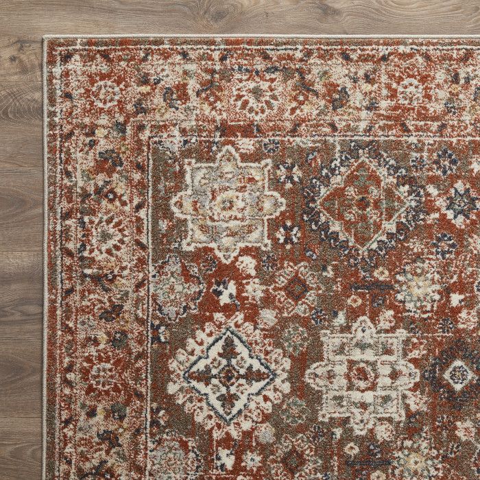 Bursting with bright, cheerful color, this Oriental-style area rug brings a touch of lively elegance to any area of your home. Intricate patterns wind their way around the border, framing the larger medallion designs in the center, all in a rich palette of warm, welcoming tones. Each rug is machine made using state-of-the-art, computer-driven looms, and the low profile pile of super-soft polypropylene yarn allows you to enjoy high-end design without sacrificing comfort. Showcase this beautifully woven area rug front and center in a lively living room, tranquil office space, or spill-prone dining area without fear of fading or stains – the durable construction of this piece ensures its long-lasting quality no matter what your life throws at it. Expert construction ensures each piece is stain resistant, maintains its appearance, and is easy to clean, so you can enjoy the look and feel of your rug for years to come.