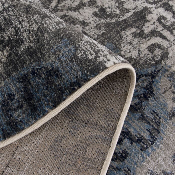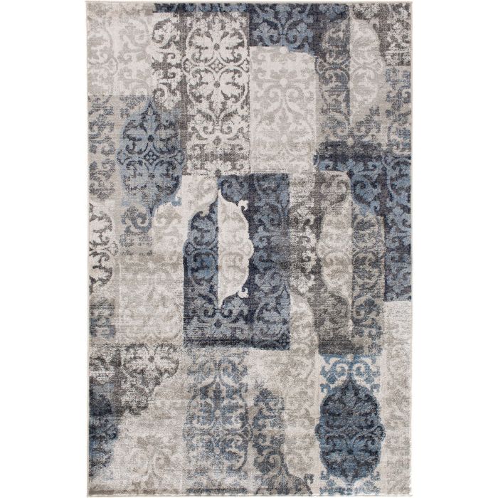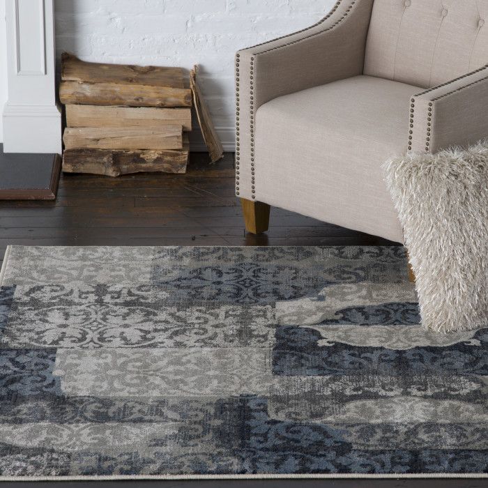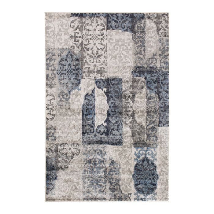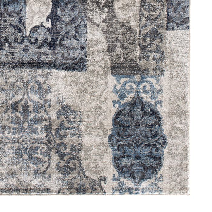 Add a touch of modern luxury to your living room, bedroom, or dining area with this stylishly faded area rug and take your home decor to the next level. Patches of ornate patterns in sapphire blue, taupe, and beige are fashionably distressed to create a compelling contemporary design that’s sure to elevate the look of any room. Use this piece to liven up your existing design, or to inspire a new style direction for your space, and enjoy the flood of compliments from friends and family as they marvel at its artistry and comfortable feel. Soft polypropylene yarn is woven using state-of-the-art, computer-driven looms to create a low profile pile that feels great underfoot and is still easy to clean. Exceptional durability frees you to place this piece anywhere in your home without fear of fading or staining, so you can enjoy the luxurious texture and beautiful design for years to come. For indoor use. Made in the USA.