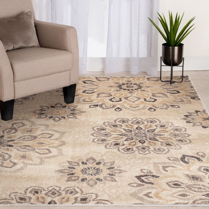 - • Stain Resistant• Fade Resistant• Machine made with 100% Polypropylene• White/Beige Floral Pattern with Jute backing.• 1.1 cm Pile Height• Durable construction is perfect for high-traffic areas• Lightweight and stain-resistant. Easy to clean and maintain, we recommend vacuuming regularly and spot cleaning with a clean cloth. Always test a small area first.