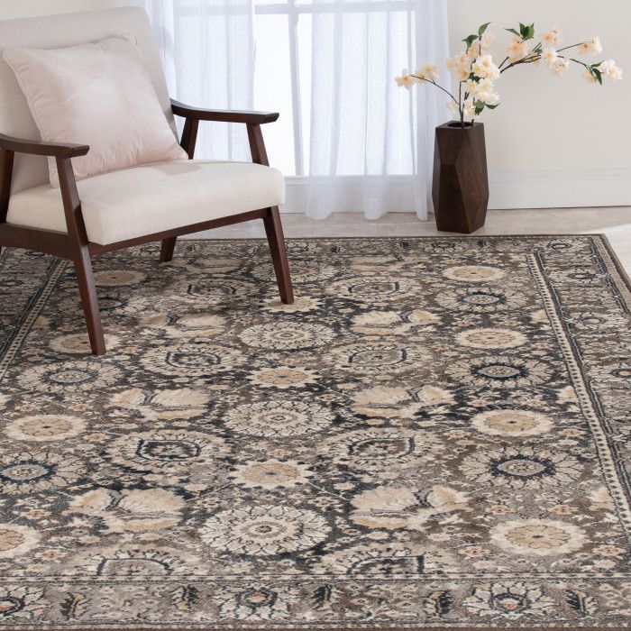 Featuring a beautiful take on traditional Oriental design, this versatile area rug works seamlessly with a wide range of home decor styles and elevates the look of any home office, bedroom, or dining area with ease. Intricate designs in brown and tan come together to create a work of art. Soft polypropylene yarn is woven using state-of-the-art, computer-driven looms to create a low profile pile that feels great underfoot and is still easy to clean. Exceptional durability frees you to place this piece anywhere in your home without fear of fading or staining, so you can enjoy the luxurious texture and beautiful design for years to come. For indoor use. Made in the USA.