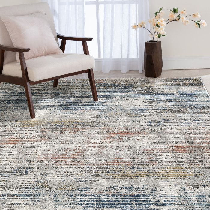 Introduce modern luxury and rustic design to your home with this stylishly distressed scatter rug and effortlessly transform any room into the space of your dreams. The painterly abstract design of this piece features an elegant color palette of royal blue, rusty red, charcoal gray, ivory, and gold to elevate the look of any living room, dining area, or home office. Each rug is machine made using state-of-the-art, computer-driven looms, and the low profile pile of super-soft polypropylene and polyester yarn allows you to enjoy high-end design without sacrificing comfort or durability. Perfect for a wide range of decor styles, this beautifully woven scatter rug will do well in any area of your home - even places with high foot traffic and spill risk. In addition to being easy to clean, the stain resistant and fade resistant properties of this piece ensure that it will maintain its appearance for years to come. For indoor use. Imported.
