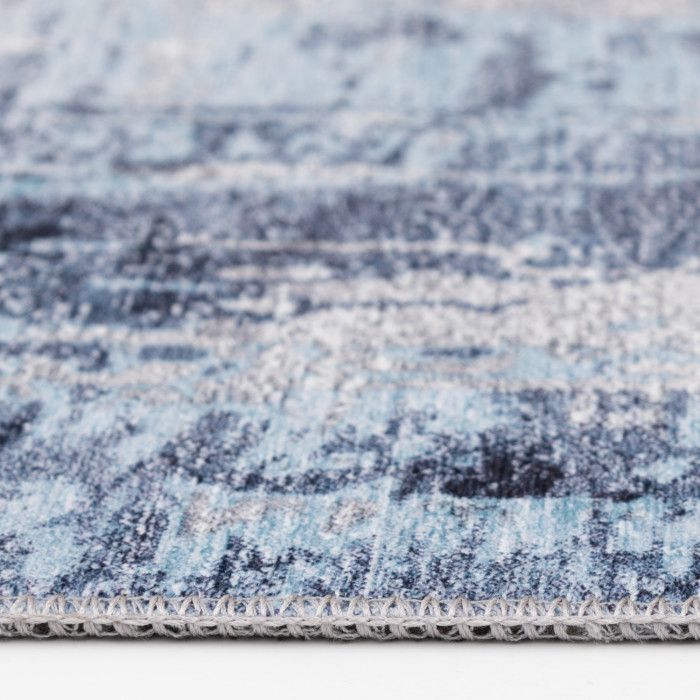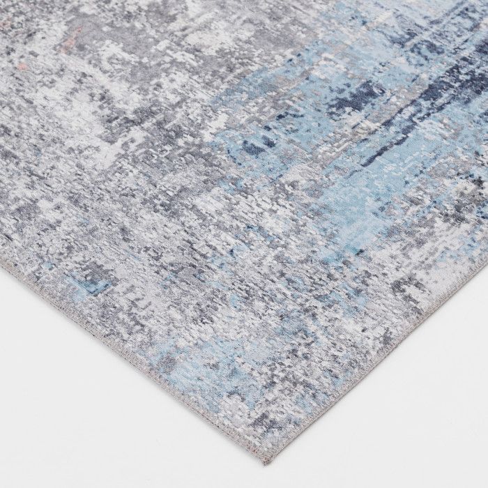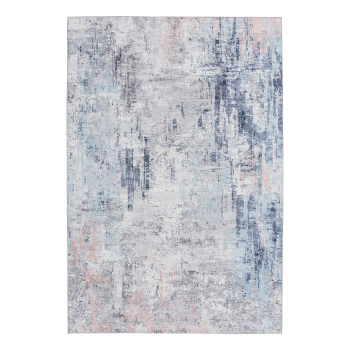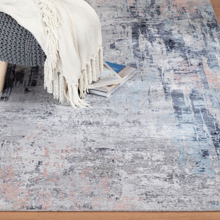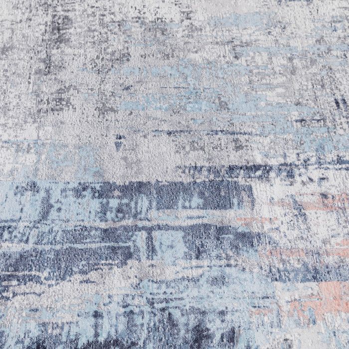 The soft color palette and beautifully abstract rustic design of this area rug will instantly elevate the look of any living room, dining area, or den to a new level of contemporary style. Invite both relaxation and lively gatherings into your space with welcoming tones of navy, dusky blue, charcoal, ivory, and coral. Friends and family will continually marvel at the striking design and vivid colors of this unique piece every time they step in the room, and you’ll love how easy it is to maintain. Each rug is digitally printed on a flat pile of polyester yarn with a “Chenille-like” finish for exceptional clarity and unlimited color options, ensuring that the exquisite design of this floor covering will maintain its appearance for years to come. Because these pieces are easy to clean, stain resistant, and fade resistant, you can feel free to showcase them in areas of high foot traffic or spill risk. For indoor use. Imported.