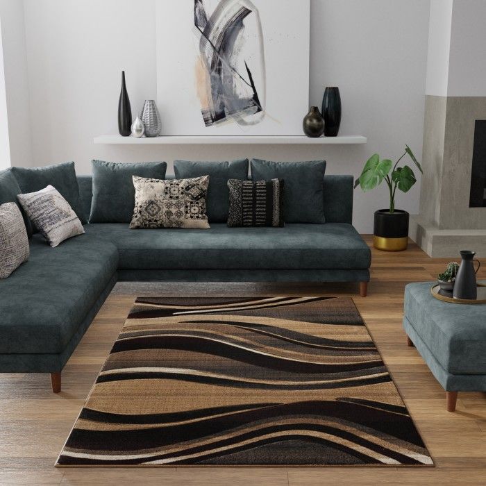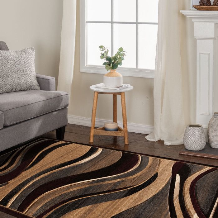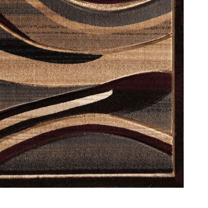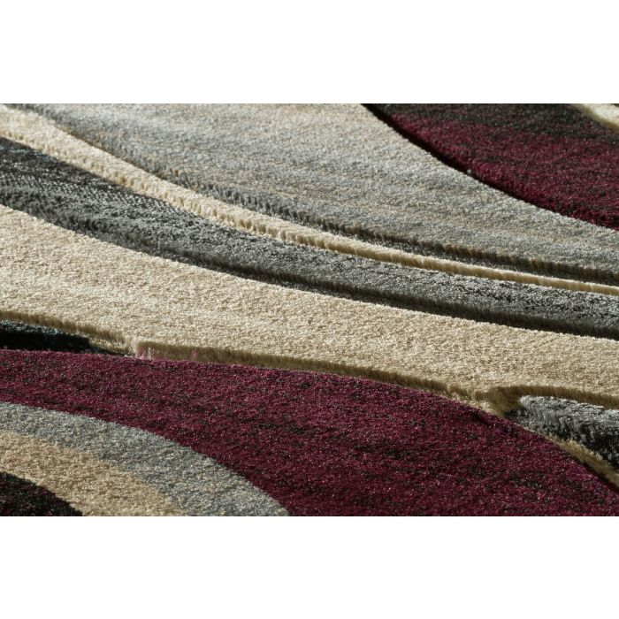 Take your home decor to the next level with this exquisite hand carved area rug and add an extra dimension to your bedroom, home office, or living room. This rug features an abstract design of different sized waves in varying tones of bold black, slate gray, deep velvet purple, off white, and cream to create an on-trend design that will elevate the look of your living room, playroom, or den with a touch of modern luxury. The polypropylene pile of this rug is soft and luxurious, and each design is hand-carved for added depth and texture. Perfect for a wide range of decor styles, this beautifully woven area rug will do well in any area of your home - even places with high traffic and spill risk. In addition to being easy to clean, the stain resistant and fade resistant properties of this piece ensure that it will maintain its rich color, exceptional design, and soft underfoot feel for years to come. For indoor use. Imported.