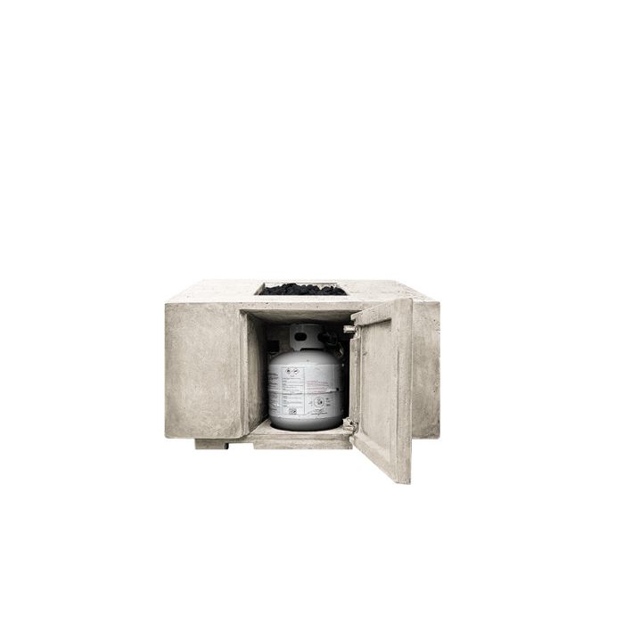The Porto 58 fire table offers a clean look and convenience by concealing a propane tank inside. It provides an outdoor retreat of warmth and ambiance. Each table has been hand-crafted using our custom patina finishing process, guaranteeing a one-of-a-kind creation with subtle variation. The 38″ by 58″ size table provides a beautiful and functional centerpiece for any backyard, patio or lounging area. The ambient heat provides plenty of warmth for multiple people. The 65,000 BTUs unit operates with a standard propane tank that fits directly inside the enclosed unit.