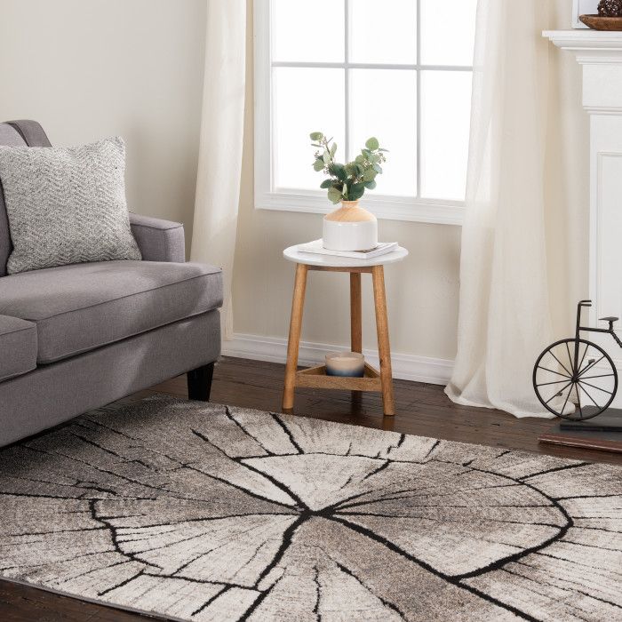 Add a new dimension to your space with the soft feel of polypropylene and polyester yarn and the striking look of an old oak tree. This eye-catching area rug uses a unique high-low technique to create a dramatic three-dimensional effect for enhanced texture and visual interest, elevating the look of your den, dining area, or living room floors with a touch of modern luxury. A neutral palette of bold black, slate gray, taupe, and soft beige creates a welcoming feel, while the unique design provides an exquisite statement piece for your home. Each rug is machine made using state-of-the-art, computer-driven looms, and the low profile pile of super-soft polypropylene yarn allows you to enjoy high-end design without sacrificing comfort or durability. Perfect for a wide range of decor styles, this beautifully woven area rug will do well in any area of your home - even places with high traffic and spill risk. In addition to being easy to clean, the stain resistant and fade resistant properties of this piece ensure that it will maintain its appearance for years to come. For indoor use. Imported.