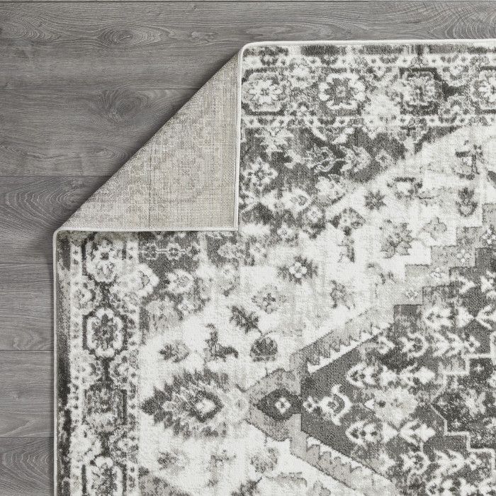 - • Stain Resistant• Fade Resistant• Machine Made With 100% Polypropylene. Jute Backing.• Cream/Gray Oriental Pattern, Covering 37.89 sq. ft.• 0.35 Pile Height Is Perfect For High-Traffic Areas• Durable construction is perfect for high-traffic areas• Lightweight and stain-resistant. Easy to clean and maintain, we recommend vacuuming regularly. Do not use beater bar/rotating brush. For spills, wipe up immediately with a clean, white towel. Spot clean with water or have it professionally cleaned.