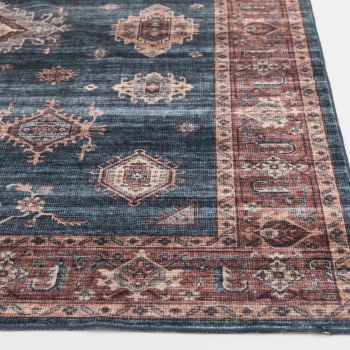 Rich colors and a traditional Persian border design make this machine-washable rug the perfect addition to your workspace, bedroom, or living area. Ornate medallion patterns and a distressed vintage feel add simple sophistication to this elegant piece, bringing a touch of low-maintenance modern luxury to any area of your home. Whether it’s a quiet office or a central dining area for friends and family to gather, this versatile rug provides a colorful, on-trend foundation for your space. Each rug is machine made using state-of-the-art, computer-driven looms, and the low profile pile of super-soft polypropylene yarn allows you to enjoy high-end design without sacrificing comfort or durability. Perfect for a wide range of decor styles, this beautifully woven area rug will do well in any area of your home - even places with high traffic and spill risk. In addition to being machine-washable, the stain resistant and fade resistant properties of this piece ensure that it will maintain its appearance for years to come.