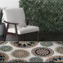 - • Stain Resistant • Fade Resistant • If using this rug outdoors, it is best suited for a covered patio. The fiber used is naturally resistant to mold and mildew, making it perfect for outdoor use; however, please be advised that it will absorb water when exposed to rain. • Machine Made With 100% Polypropylene Yarn. • White/Green Medallion Pattern covering 15.71 sq ft • 0.28 in Pile Height • Durable construction is perfect for high-traffic areas • Lightweight and stain-resistant. Easy to clean and maintain, we recommend vacuuming regularly or spraying with a garden hose. Always test a small area first.