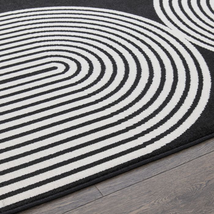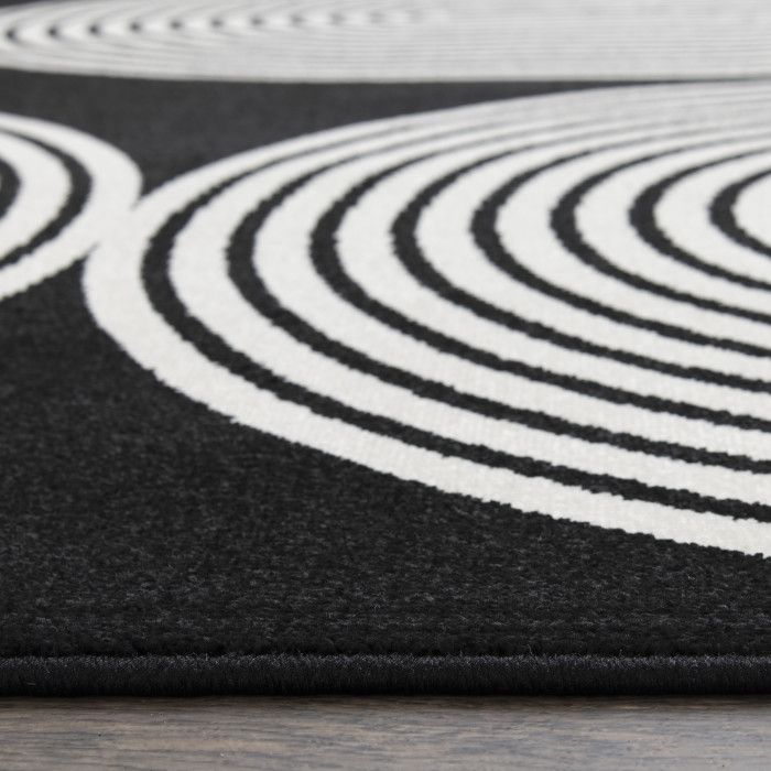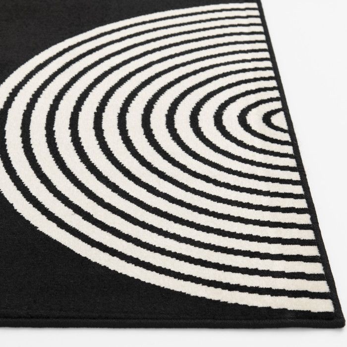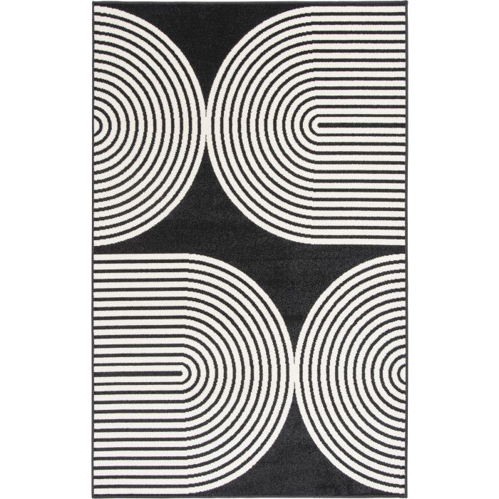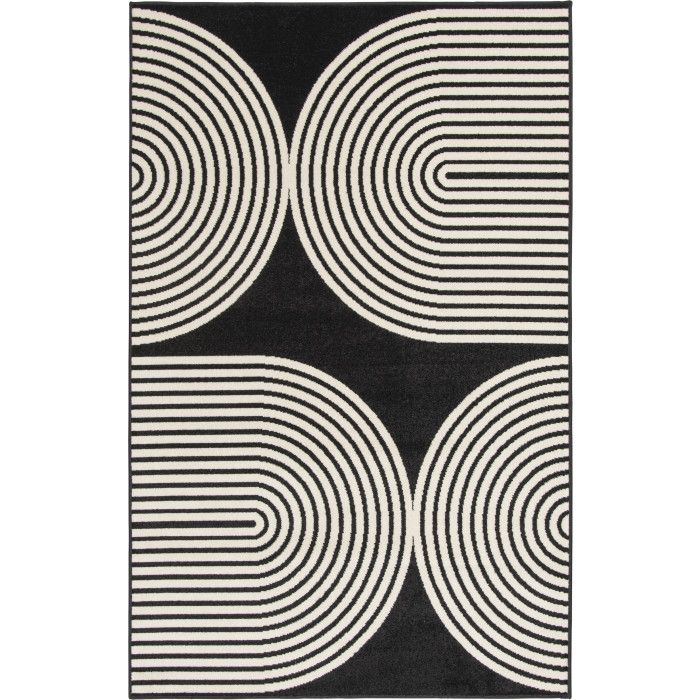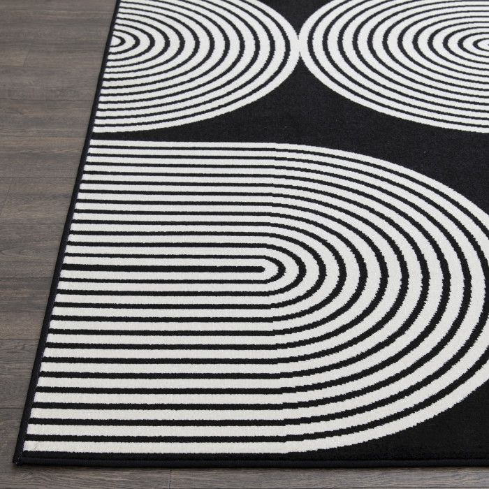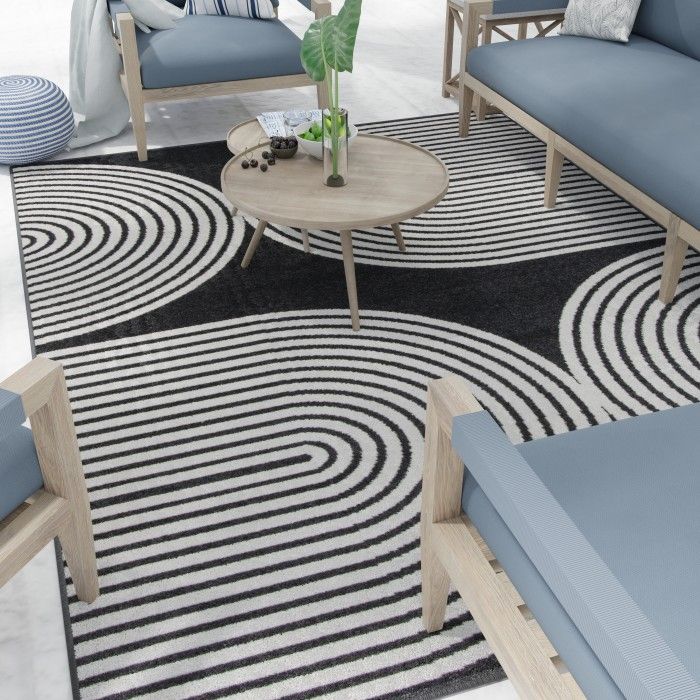 Simply sophisticated and stylishly modern, this trendy area rug adds a touch of luxury to any area of your home with ease. Curved geometric designs evoke a sense of depth and dimension, allowing you to create an eye-catching foundation for any space. From busy dining areas to quiet workspaces, this beautifully woven floor covering will become the focal point of your home decor, eliciting compliments from impressed guests every time they step in the room – and you’ll love how easy it is to maintain. Each rug is machine made using state-of-the-art, computer-driven looms, and the low profile pile of polypropylene yarn allows you to enjoy high-end design without sacrificing comfort or durability. Perfect for a wide range of decor styles, this beautifully woven area rug will do well in any area of your home - even places with high traffic and spill risk. In addition to being easy to clean, the stain resistant and fade resistant properties of this piece ensure that it will maintain its appearance for years to come. For indoor or outdoor use. If using this rug outdoors, it is best suited for a covered patio. The fiber used is naturally resistant to mold and mildew, making it perfect for outdoor use; however, please be advised that it will absorb water when exposed to rain. Made in the USA.