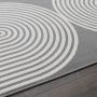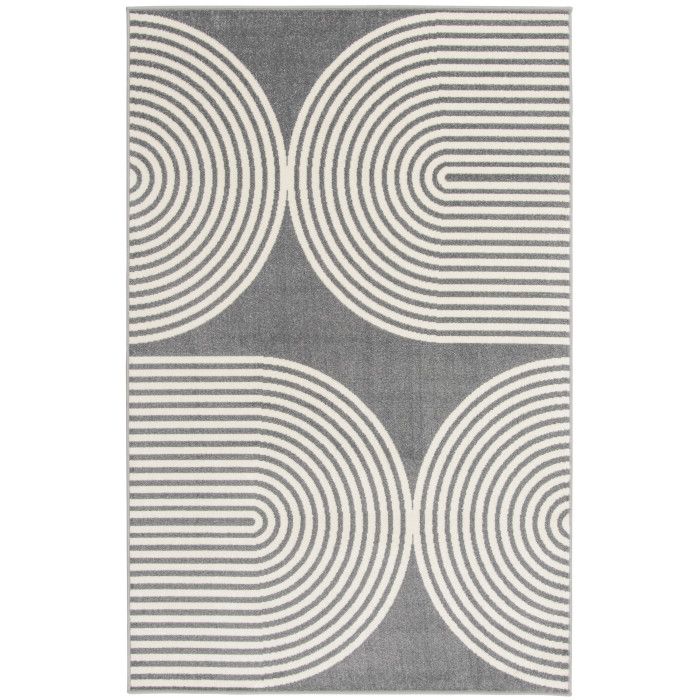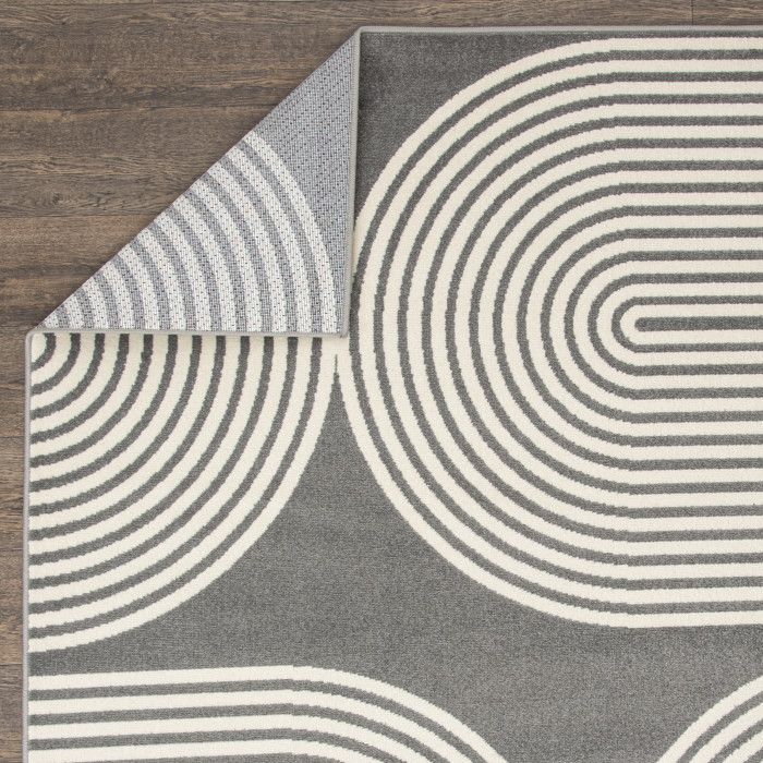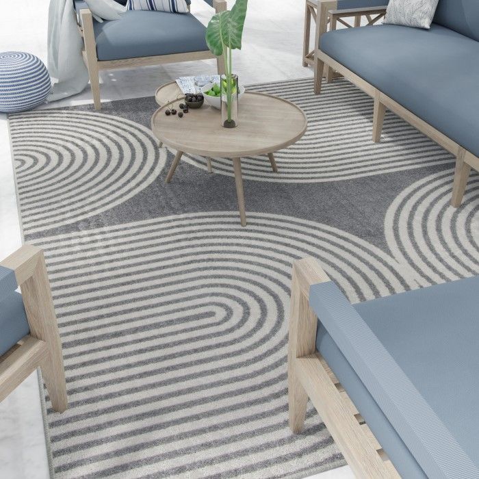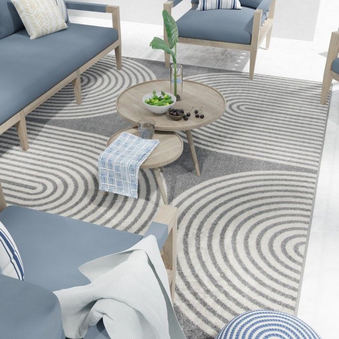 Simply sophisticated and stylishly modern, this trendy area rug adds a touch of luxury to any area of your home with ease. Curved geometric designs evoke a sense of depth and dimension, allowing you to create an eye-catching foundation for any space. From busy dining areas to quiet workspaces, this beautifully woven floor covering will become the focal point of your home decor, eliciting compliments from impressed guests every time they step in the room – and you’ll love how easy it is to maintain. Each rug is machine made using state-of-the-art, computer-driven looms, and the low profile pile of polypropylene yarn allows you to enjoy high-end design without sacrificing comfort or durability. Perfect for a wide range of decor styles, this beautifully woven area rug will do well in any area of your home - even places with high traffic and spill risk. In addition to being easy to clean, the stain resistant and fade resistant properties of this piece ensure that it will maintain its appearance for years to come. For indoor or outdoor use. If using this rug outdoors, it is best suited for a covered patio. The fiber used is naturally resistant to mold and mildew, making it perfect for outdoor use; however, please be advised that it will absorb water when exposed to rain. Made in the USA.