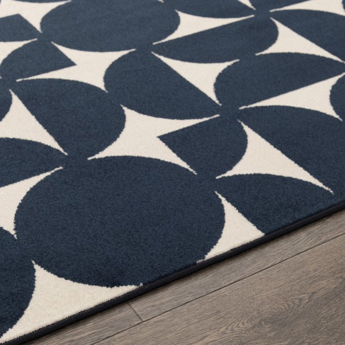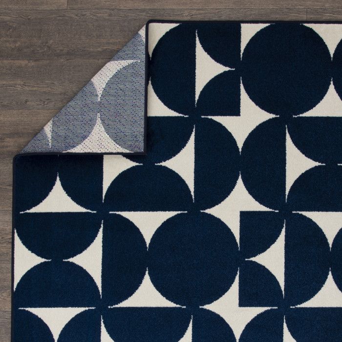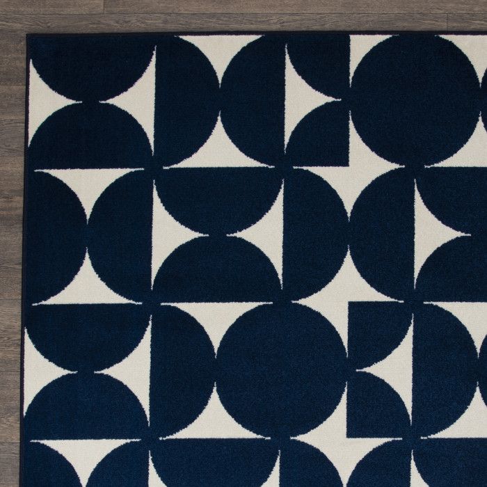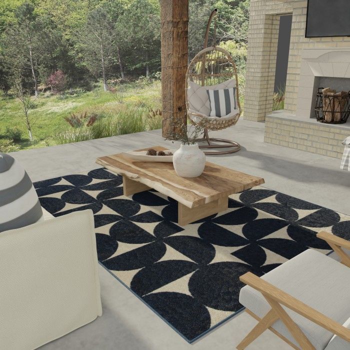 The modern artistry of this on-trend area rug combines abstract geometrics with simple sophistication, creating a chic, eye-catching foundation for any area of your home. Bold semi-circles in various positions evoke the feeling of a puzzle waiting to be solved, adding an extra element of visual interest. Because these pieces are long-lasting, durable, and easy to clean, you can enjoy spending time in your favorite space without fear of staining or fading – even in the most high-traffic or spill-prone areas of your home. Whether it’s a busy dining area or a quiet workspace, you can enjoy the quality look and feel of this piece for years to come. Each rug is machine made using state-of-the-art, computer-driven looms, and polypropylene yarns create a low profile pile that’s stain resistant and fade resistant. Delight in a modern combination of rich color, surprising comfort, and exceptional durability that fits both your home and your lifestyle effortlessly. For indoor or outdoor use. If using this rug outdoors, it is best suited for a covered patio. The fiber used is naturally resistant to mold and mildew, making it perfect for outdoor use; however, please be advised that it will absorb water when exposed to rain. Made in the USA.