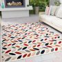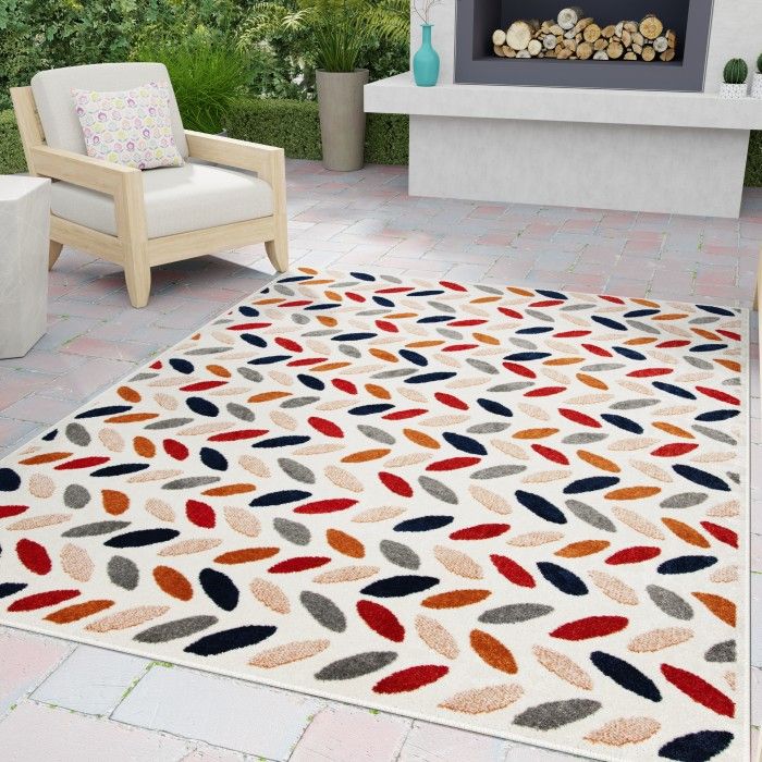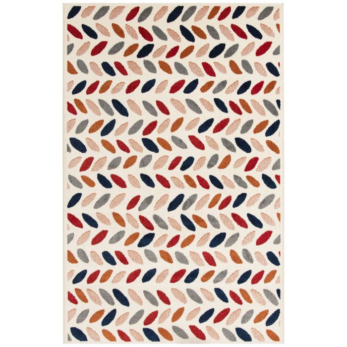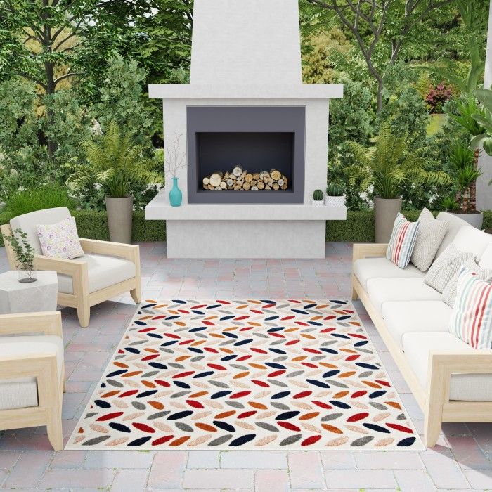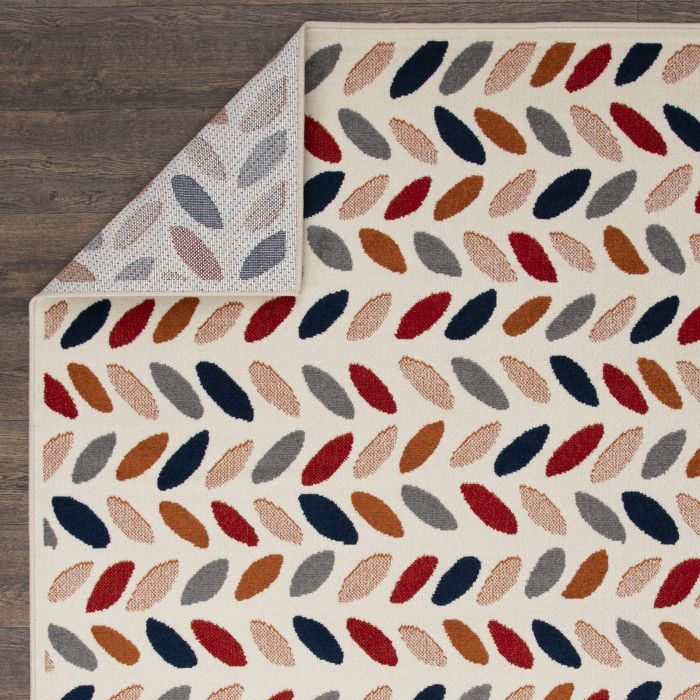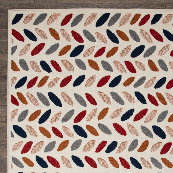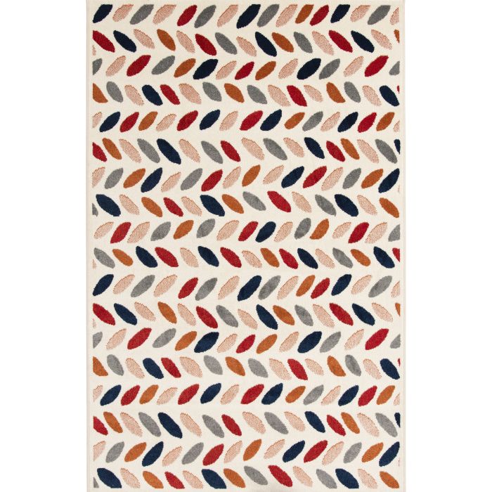 Add a pop of color to your space with this cheerful area rug, featuring a welcoming, contemporary palette and a visually compelling design. Neat rows of colorful leaf-like shapes stretch from edge to edge, allowing you to enjoy a bit of whimsical modern style anywhere in your home. Because these pieces are long-lasting, durable, and easy to clean, you can enjoy spending time in your favorite space without fear of staining or fading – even in the most high-traffic or spill-prone areas of your home. Whether it’s a busy dining area or a quiet workspace, you can enjoy the quality look and feel of this piece for years to come. Each rug is machine made using state-of-the-art, computer-driven looms, and polypropylene yarns create a low profile pile that’s stain resistant and fade resistant. Delight in a modern combination of rich color, surprising comfort, and exceptional durability that fits both your home and your lifestyle effortlessly. For indoor or outdoor use. If using this rug outdoors, it is best suited for a covered patio. The fiber used is naturally resistant to mold and mildew, making it perfect for outdoor use; however, please be advised that it will absorb water when exposed to rain. Made in the USA.