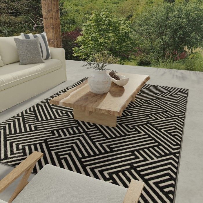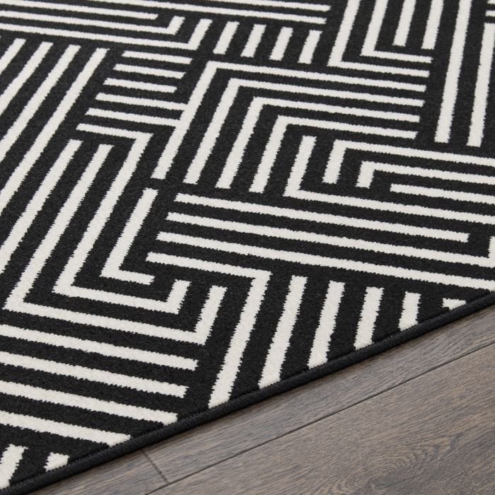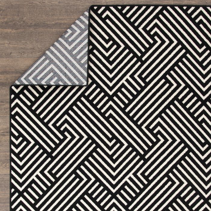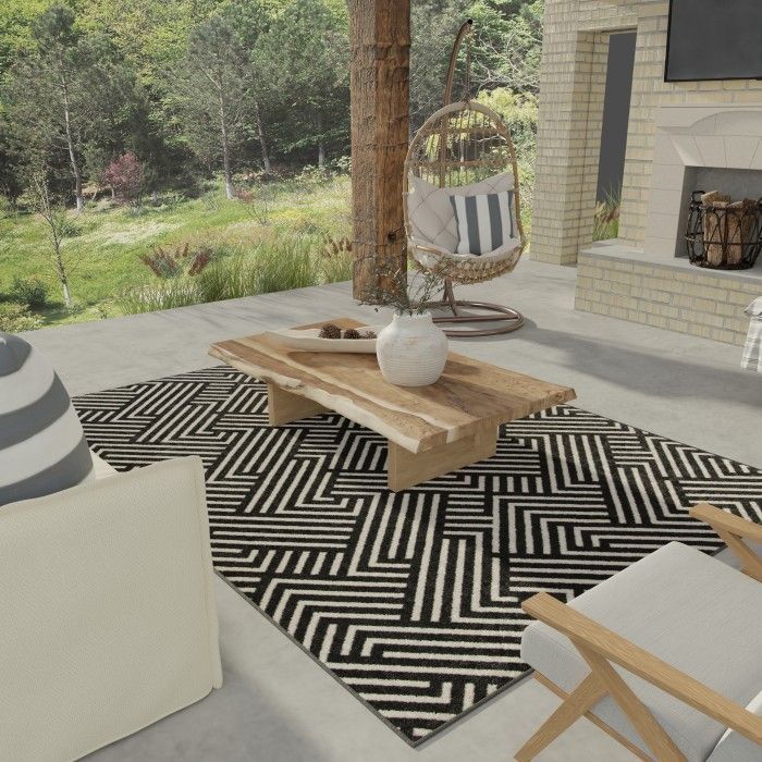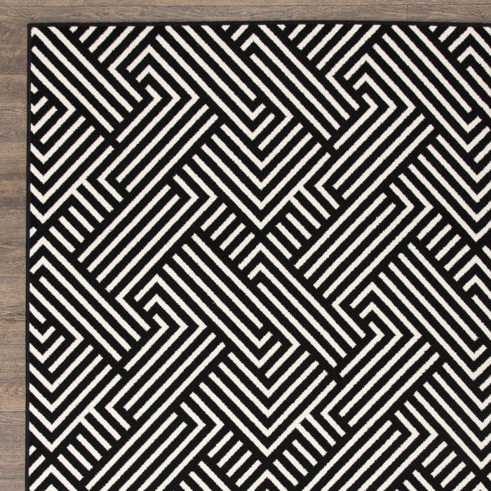 Visually compelling and delightfully modern, this abstract area rug allows you to introduce a touch of luxury to any room with ease. The eye-catching linear weave of this unique piece evokes the feeling of an optical illusion, adding an element of depth and dimension to your space. Whether your style is minimalist, industrial, or something in between, this beautifully woven floor covering will become the focal point of your home decor, eliciting compliments from impressed guests every time they step in the room – and you’ll love how easy it is to maintain. Each rug is machine made with state-of-the-art, computer-driven looms and built to last in any area, from a quiet workspace to a busy dining room. Feel free to place this floor covering front and center in your home with no fear of fading or staining – surprisingly comfortable polypropylene yarns create a low profile pile that’s stain resistant, maintains appearance, and is easy to clean. For indoor or outdoor use. If using this rug outdoors, it is best suited for a covered patio. The fiber used is naturally resistant to mold and mildew, making it perfect for outdoor use; however, please be advised that it will absorb water when exposed to rain. Made in the USA.