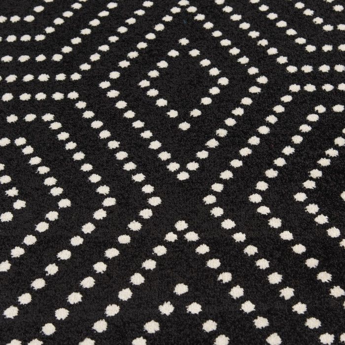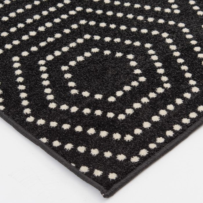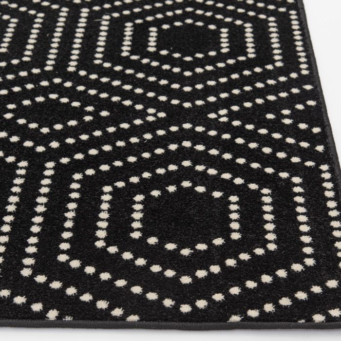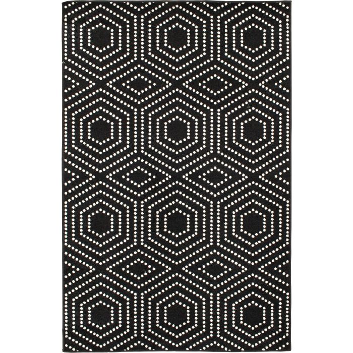 It’s not an optical illusion – this area rug really is stylish enough for your indoor dining area or bedroom and durable enough for your backyard garden space or patio! The elegant black and white rug features a trendy geometric pattern made up of tiny dots, creating a fun visual effect with the simplicity of modern design. Whether your style is minimalist, industrial, or something in between, this beautifully woven floor covering will become the focal point of your home decor, eliciting compliments from impressed guests every time they step in the room – and you’ll love how easy it is to maintain. Each rug is machine made with state-of-the-art, computer-driven looms and built to last. Feel free to place this floor covering front and center in your home with no fear of fading or staining – surprisingly comfortable polypropylene yarns create a low profile pile that’s stain resistant, maintains appearance, and is easy to clean. For indoor or outdoor use. If using this rug outdoors, it is best suited for a covered patio. The fiber used is naturally resistant to mold and mildew, making it perfect for outdoor use; however, please be advised that it will absorb water when exposed to rain. Made in the USA.