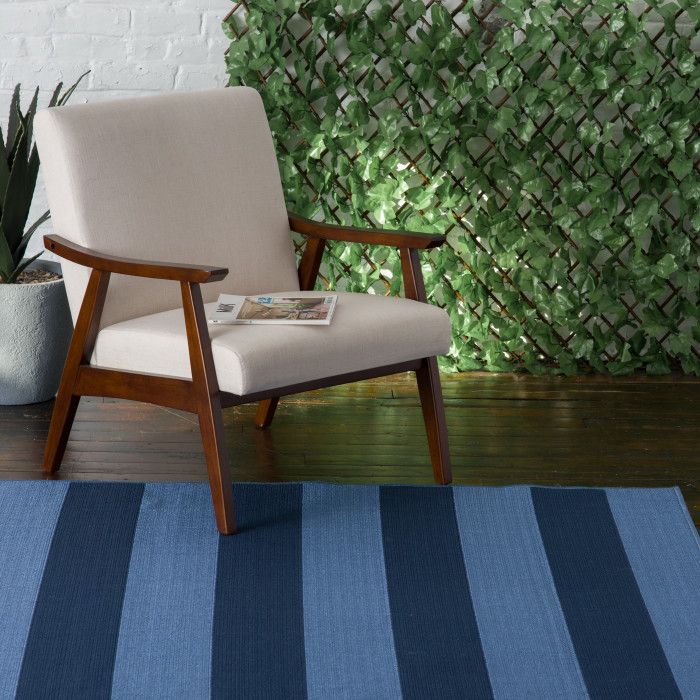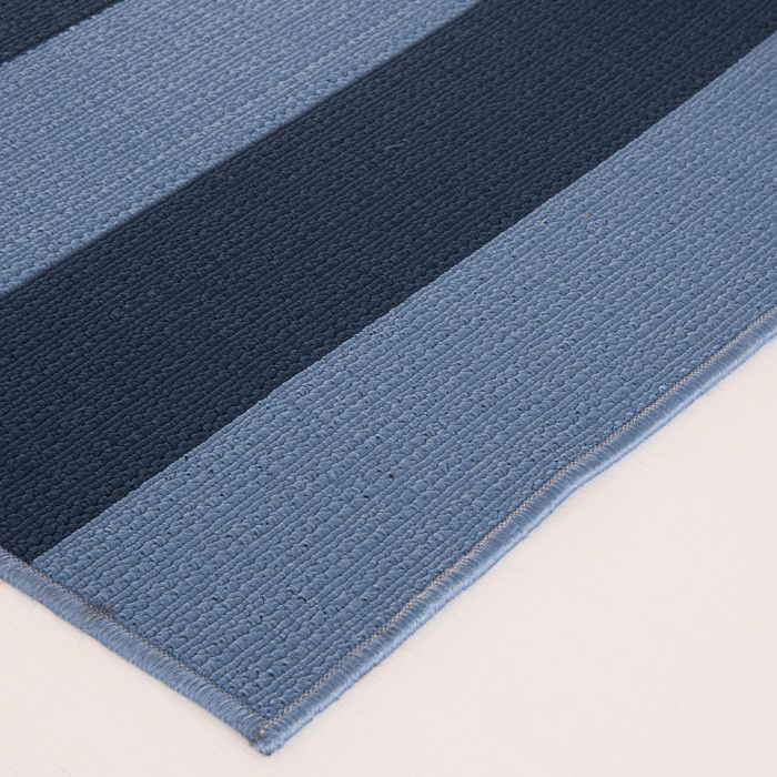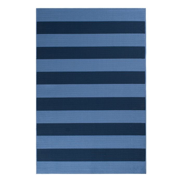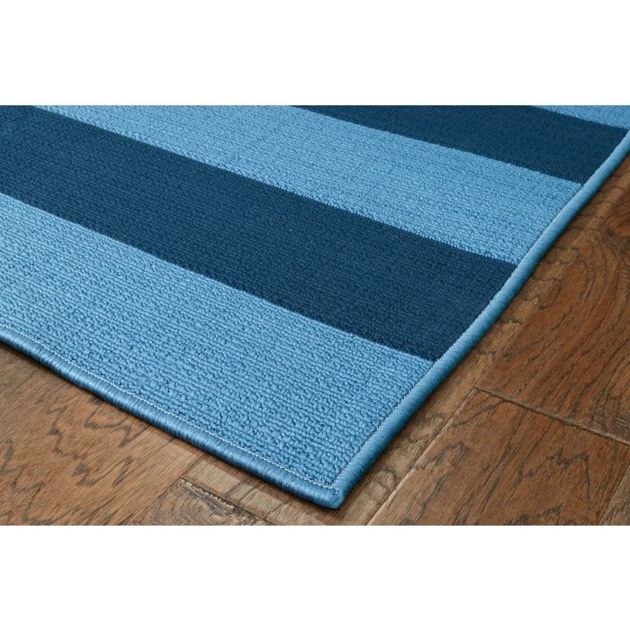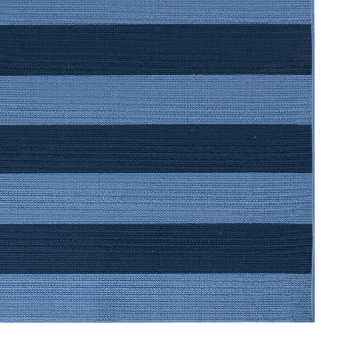 Create your own personal oasis with the classic pattern and vivid tones of this versatile rug, evoking the feeling of a sunny beachside getaway in any sunroom, patio, or kitchen. Bright turquoise blue and deep navy stripes bring a carefree coastal feel to your space, and the modern design and on-trend colors of this piece allow it to work seamlessly with any style of home decor. Whether it’s a quiet, sunny spot on the deck or a central dining area for family and friends to gather, this floor covering lets you infuse a bit of low maintenance, high-end design into your home without fear of staining or fading. These gorgeous rugs are fade resistant, stain resistant, and surprisingly comfortable underfoot thanks to soft polypropylene yarns, so you can spend more time enjoying your space. Easy to clean and machine made using state-of-the-art, computer-driven looms, these rugs are sure to maintain their rich color and exceptional quality for years to come.