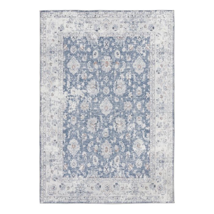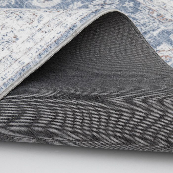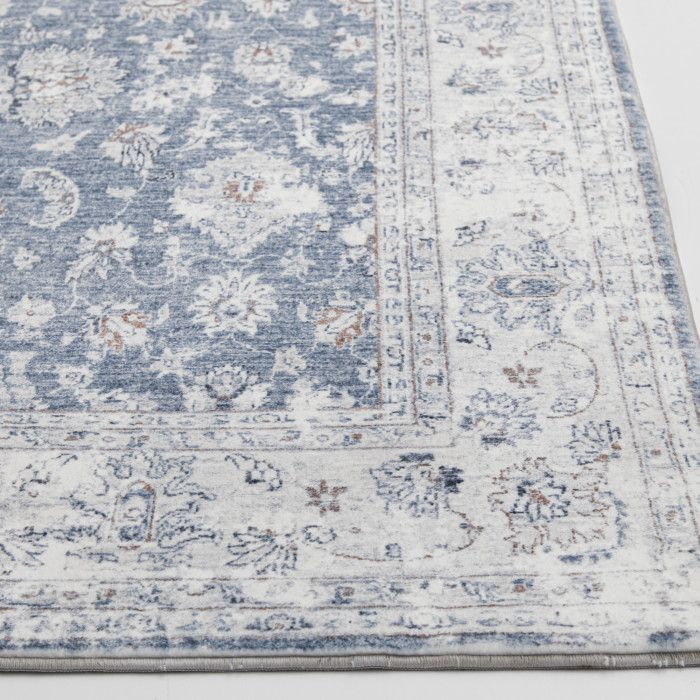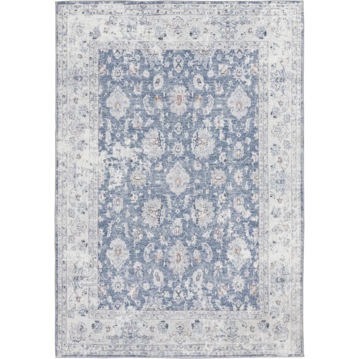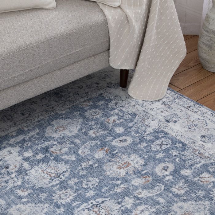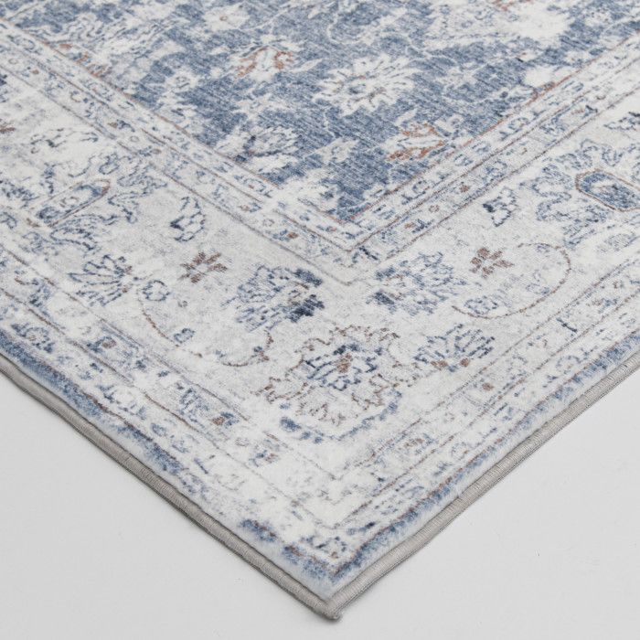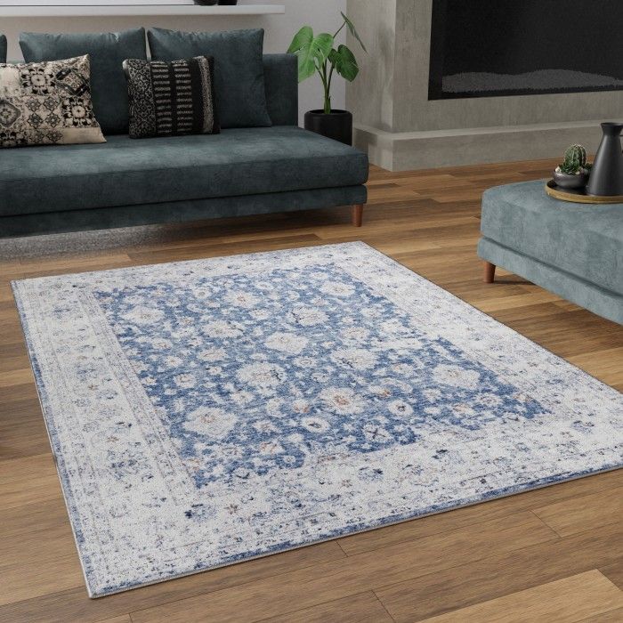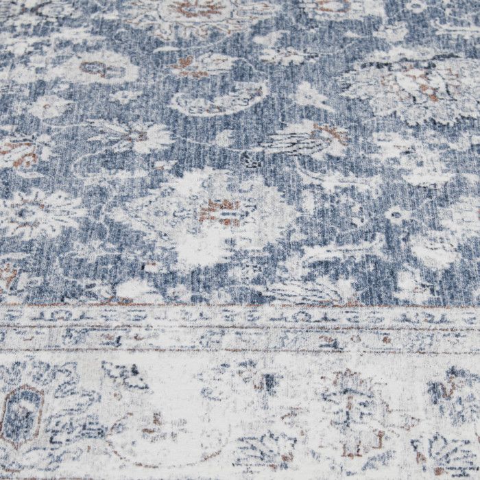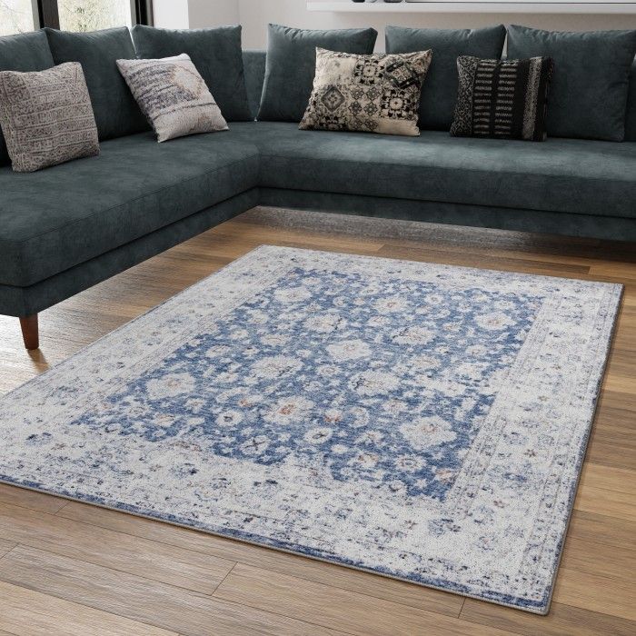 Pairing traditional design with fashionable distressing, the simple sophistication this beautiful border rug adds a touch of elegance to any room. Intricate designs with coral accents wind through an ivory border surrounding a cobalt blue center, creating a welcoming and stylish foundation for your living room, home office, or dining area. Enjoy the exceptionally crisp details and rich colors throughout, this area rug, machine-made with an eye-catching digitally printed design and touch-worthy 100% polyester faux fur. Even in busy homes with pets, children, or frequent visitors, the stain-resistant and fade-resistant properties of this rug allow it to shine in any area of your home. With a thick cotton canvas backing for added stability, this unique piece. is able to meet the needs of a modern household, in both style and durability. Bring a touch of modern luxury to even the busiest areas of your home, and enjoy the high-end design and irresistible softness underfoot for years to come.