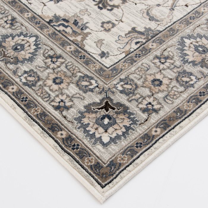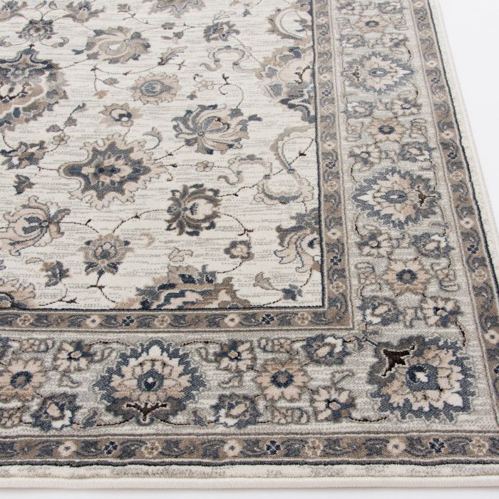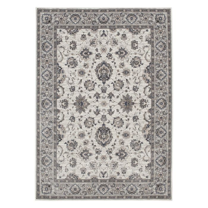 Sophisticated design and soft ornate patterns of this area rug pair with cheerful tones make it a neutral yet eye-catching foundation for your favorite room. This subtle variation on the classic border rug features intricate floral patterns and a welcoming palette of warm colors. Blush beige, off white, and dusty gray tones create a natural element of relaxation within your space, inviting guests to gather and enjoy your home’s unique style. Each rug is machine made using state-of-the-art, computer-driven looms, and the low profile pile of super-soft polypropylene yarn allows you to enjoy high-end design without sacrificing comfort. Showcase this beautifully woven area rug front and center in a lively living room, tranquil office space, or spill-prone dining area without fear of fading or stains – the durable construction of this piece ensures its long-lasting quality no matter what your life throws at it. For indoor use. Made in the USA.